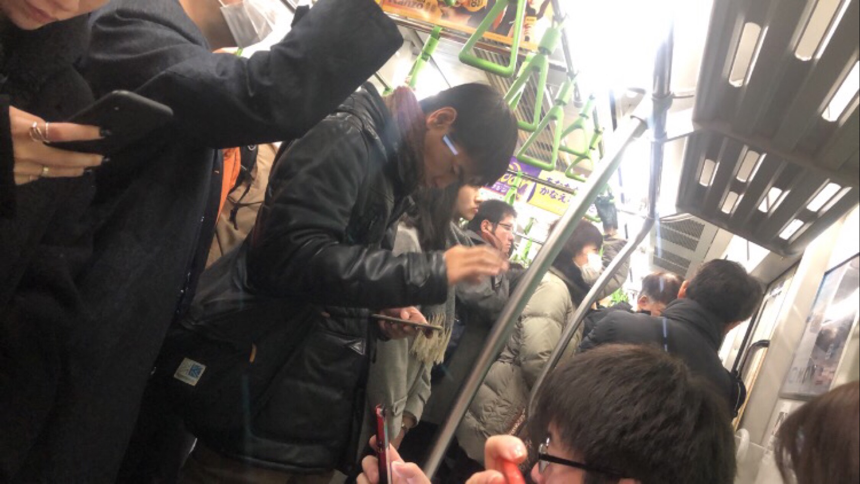 On a crowded train. Thanks goodness I got a seat! 😂😥😂