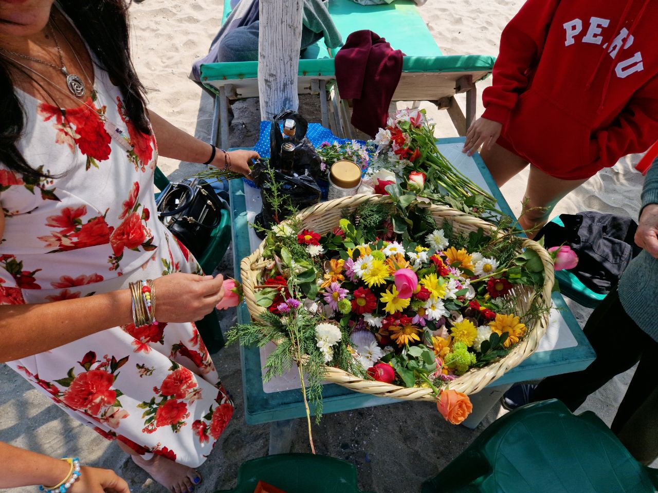 The basket was filled with flowers, sprinkled with his favorite rum and in the end all who wanted could put some of his ashes in.