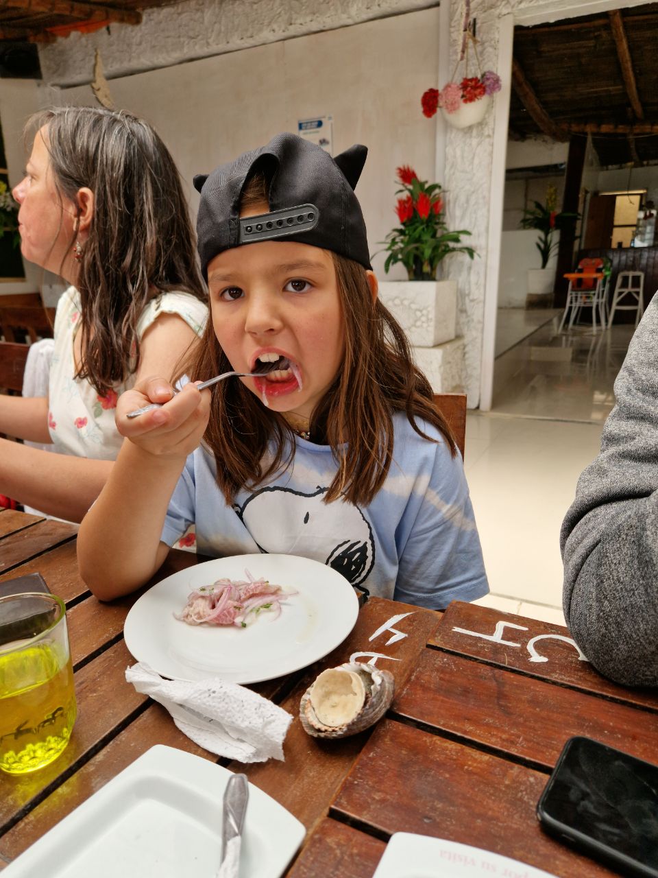 After that it was time for lunch. For me? Ceviche of course and Emma had her first couple of bites!