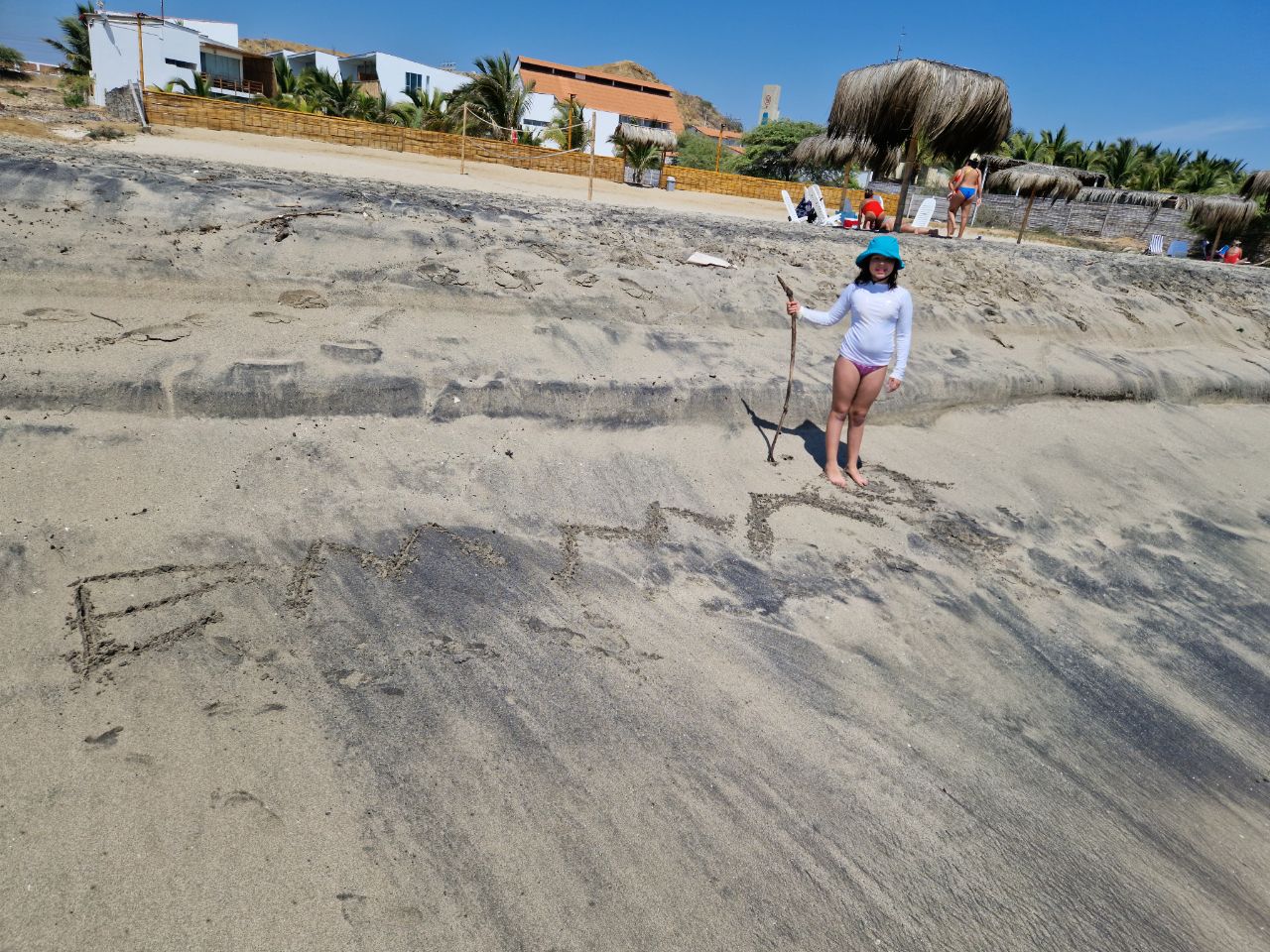 With the sunset we went back to the beach, Emma flying a kite and enjoy the last sunset of our stay here.