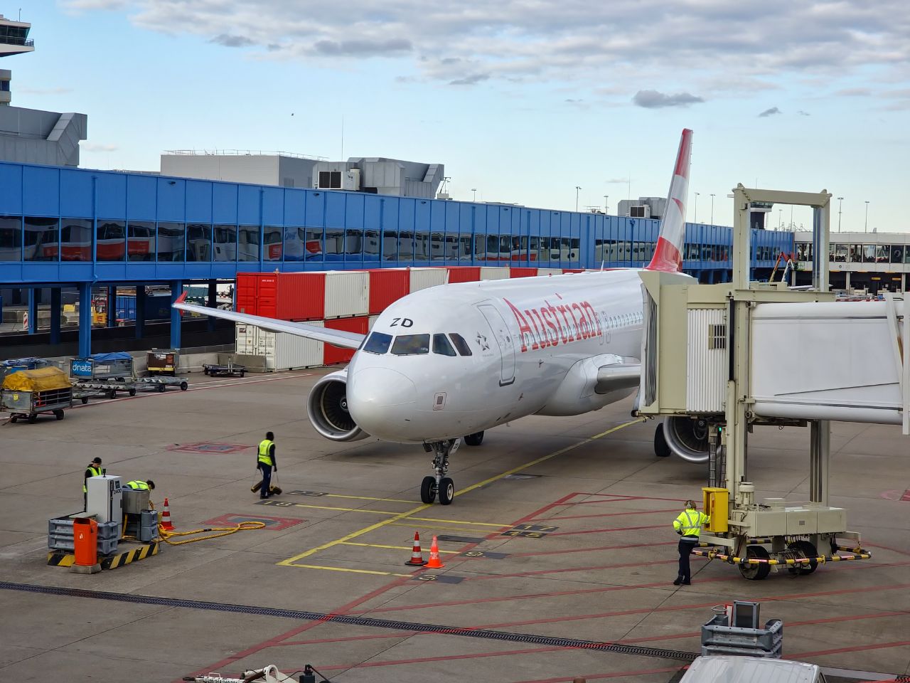 Wachten op Schiphol voor vertrek naar Wenen. We vertrekken op tijd.