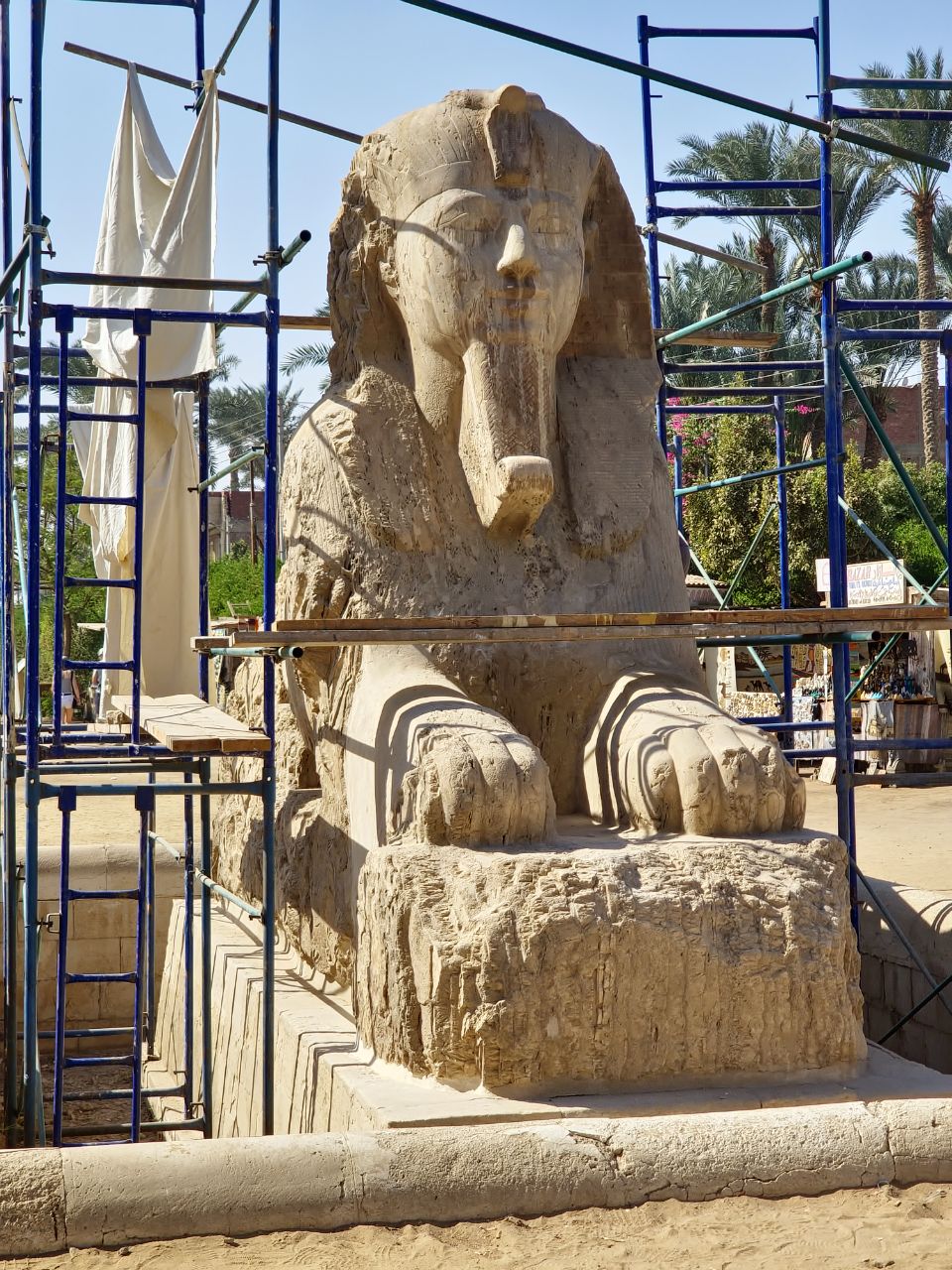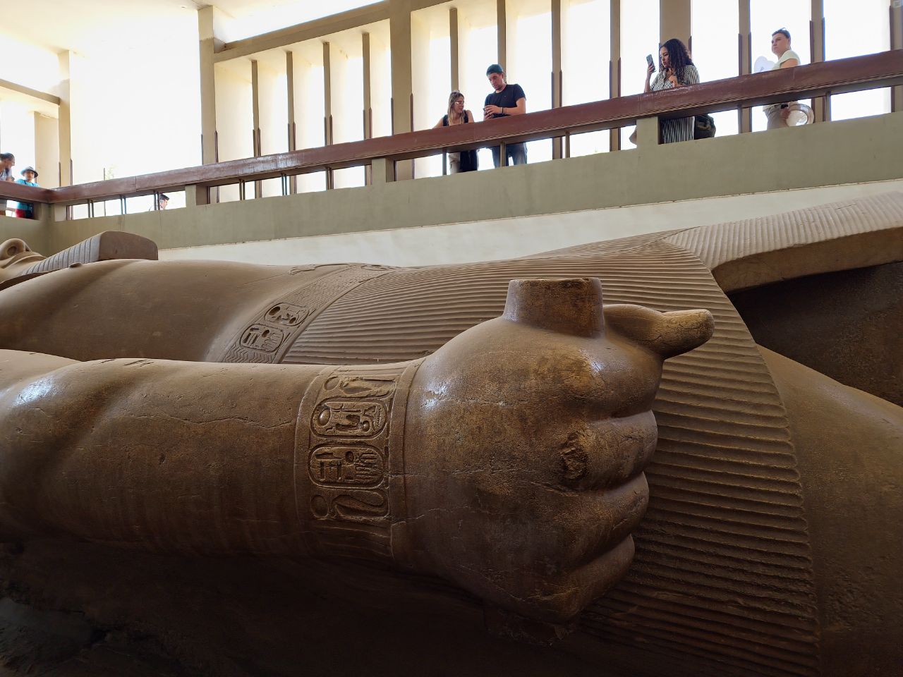 Bezoeken de oude stad Memphis om het enorme beeld van Ramses II, de grootste farao ooit