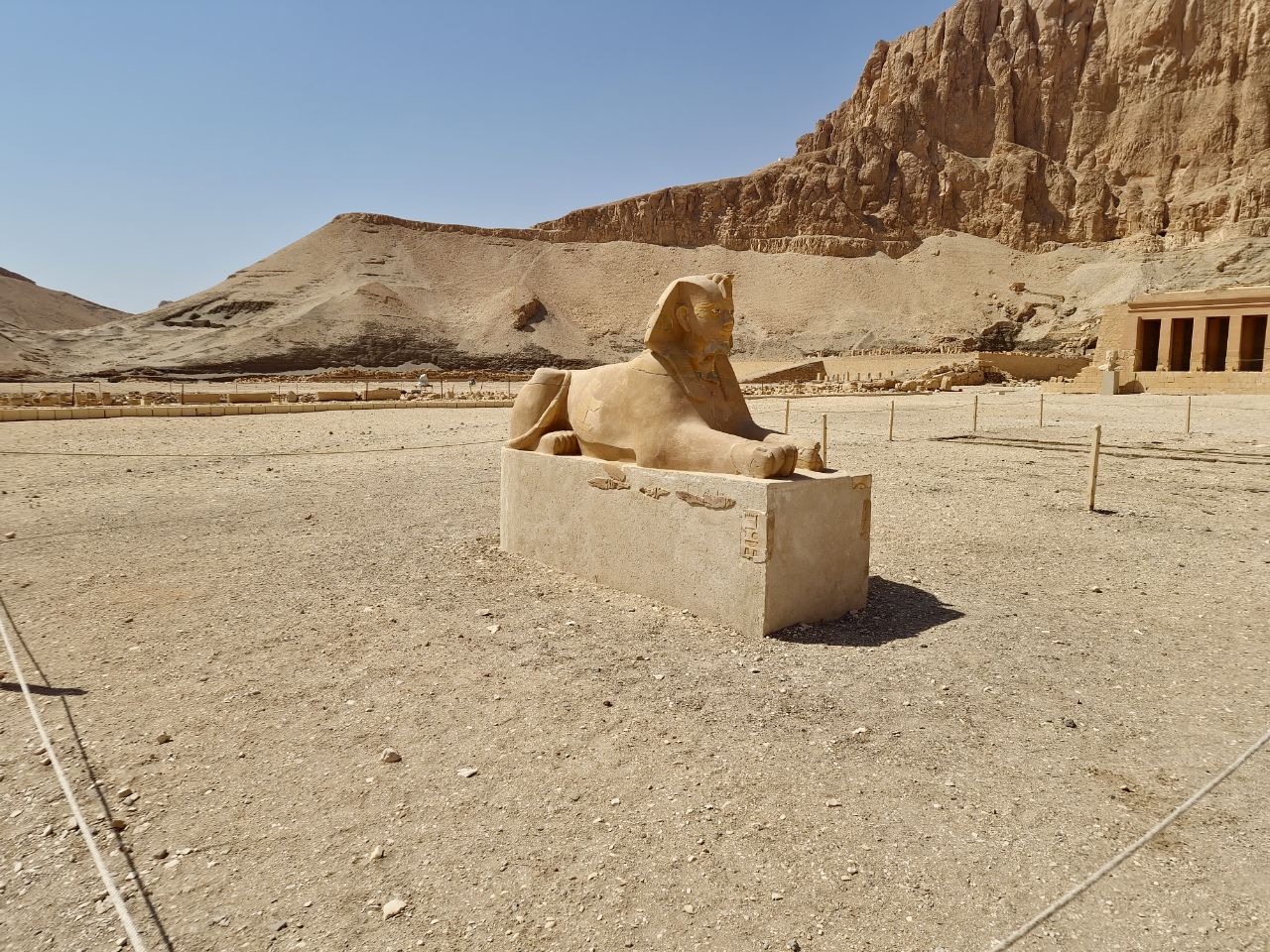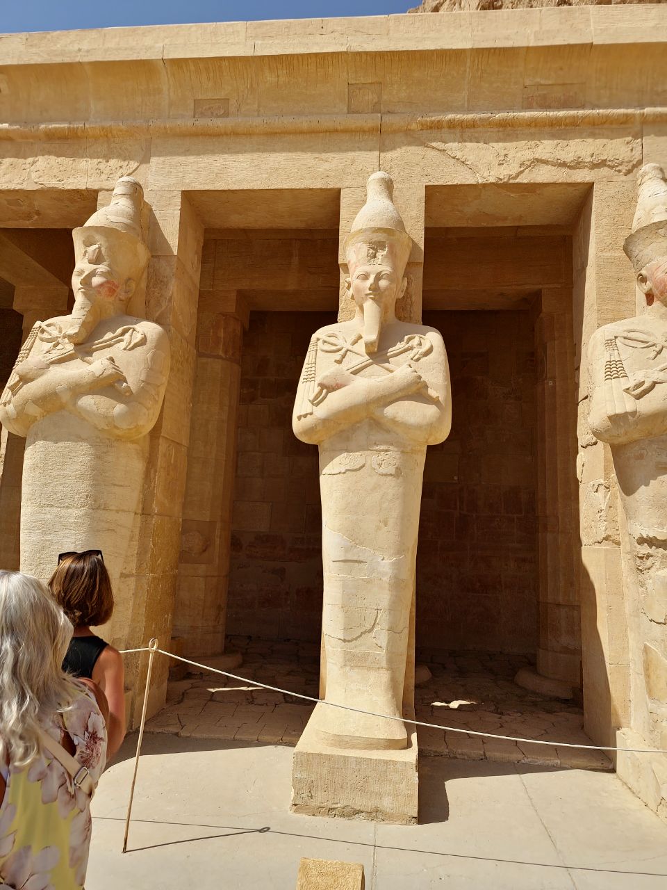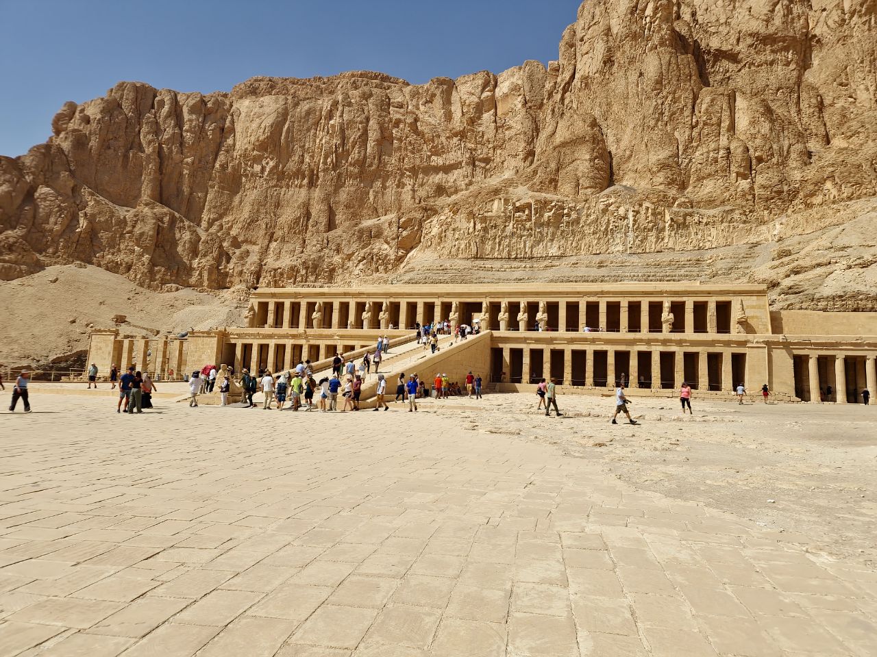 Tempel van Hatshepsut (Hatsjepsoet). De enige vrouwelijk farao die 20 jaar heeft geregeert. Het was hier heet, heel heet, ruim 35 graden