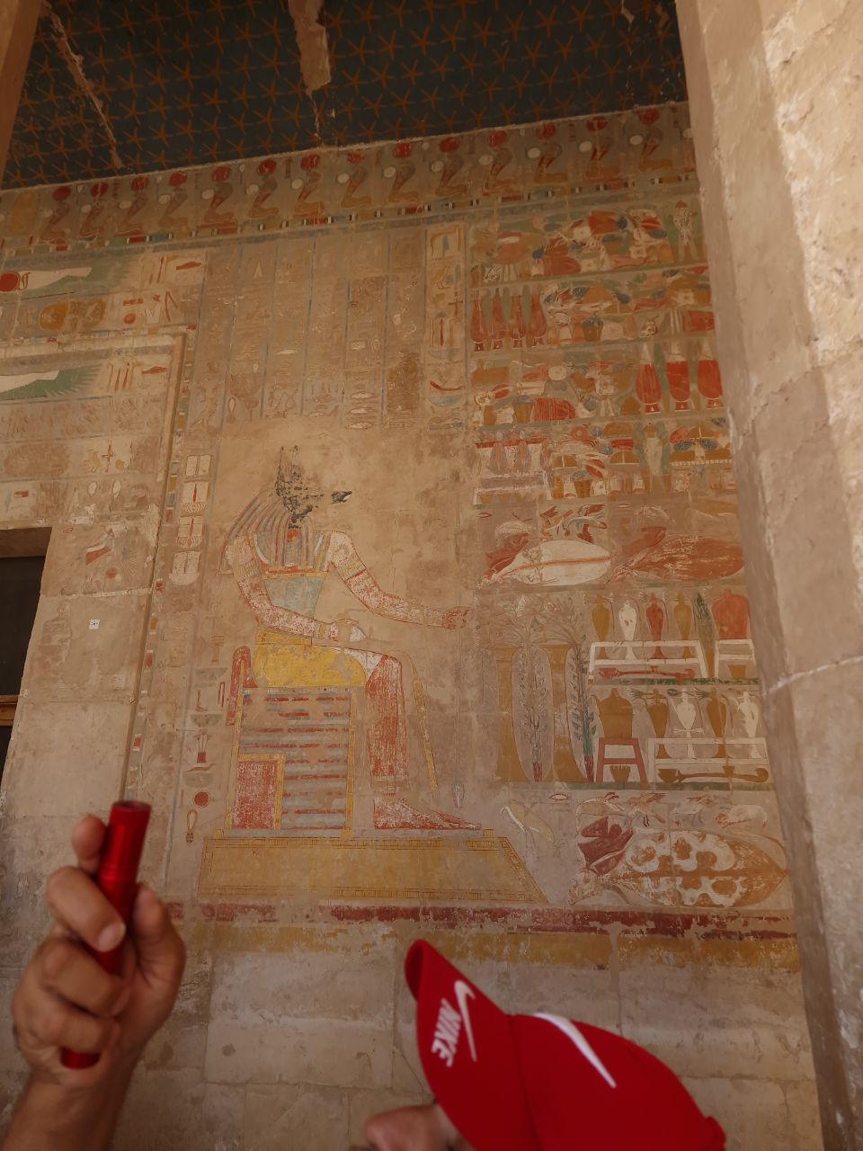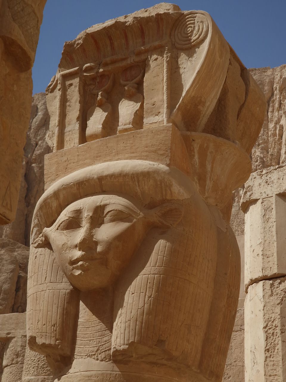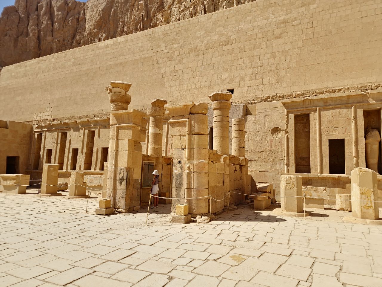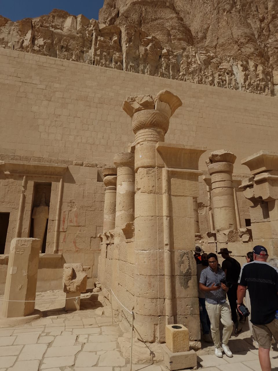 Tempel van Hatshepsut (Hatsjepsoet). De enige vrouwelijk farao die 20 jaar heeft geregeert. Het was hier heet, heel heet, ruim 35 graden