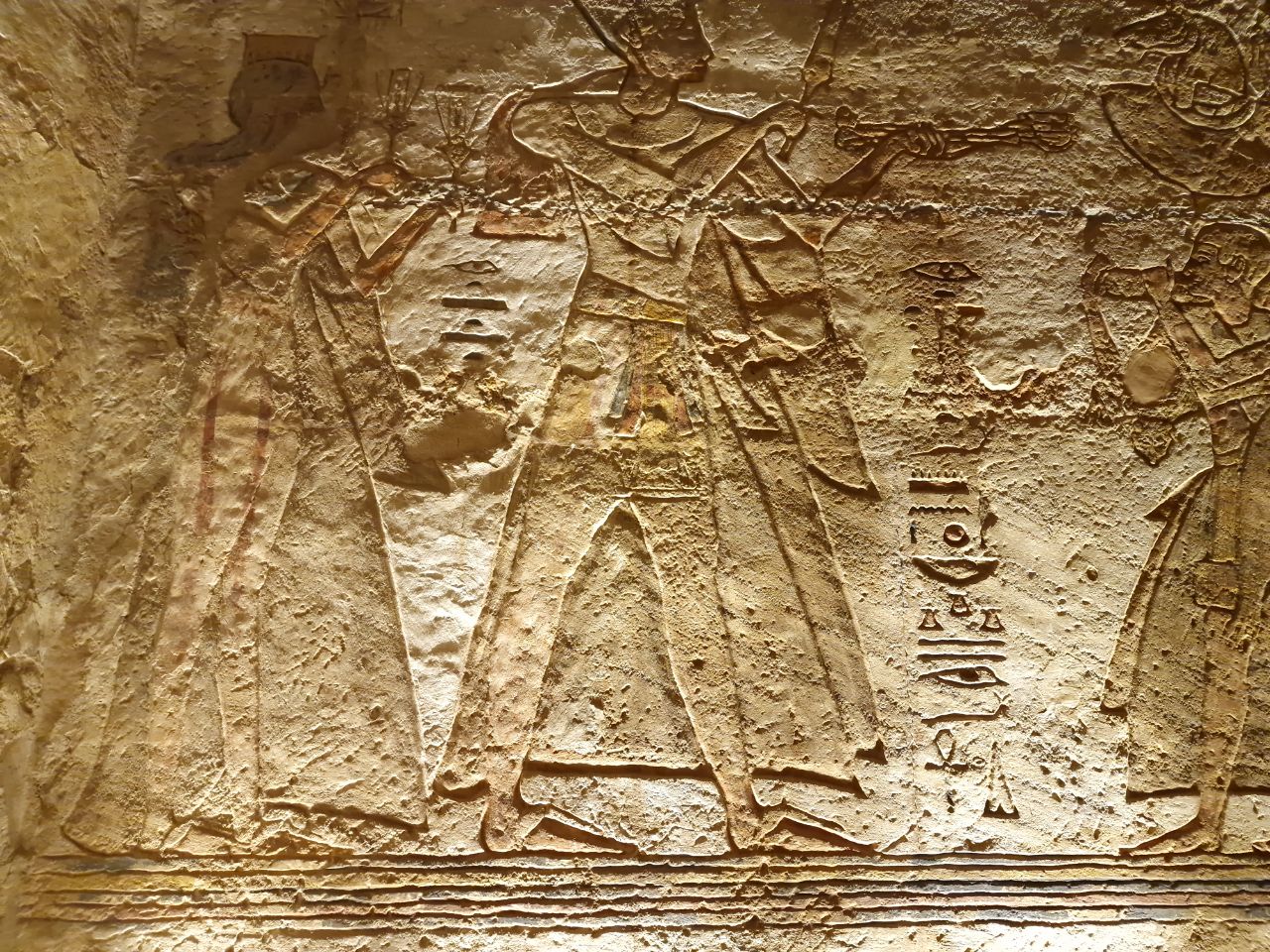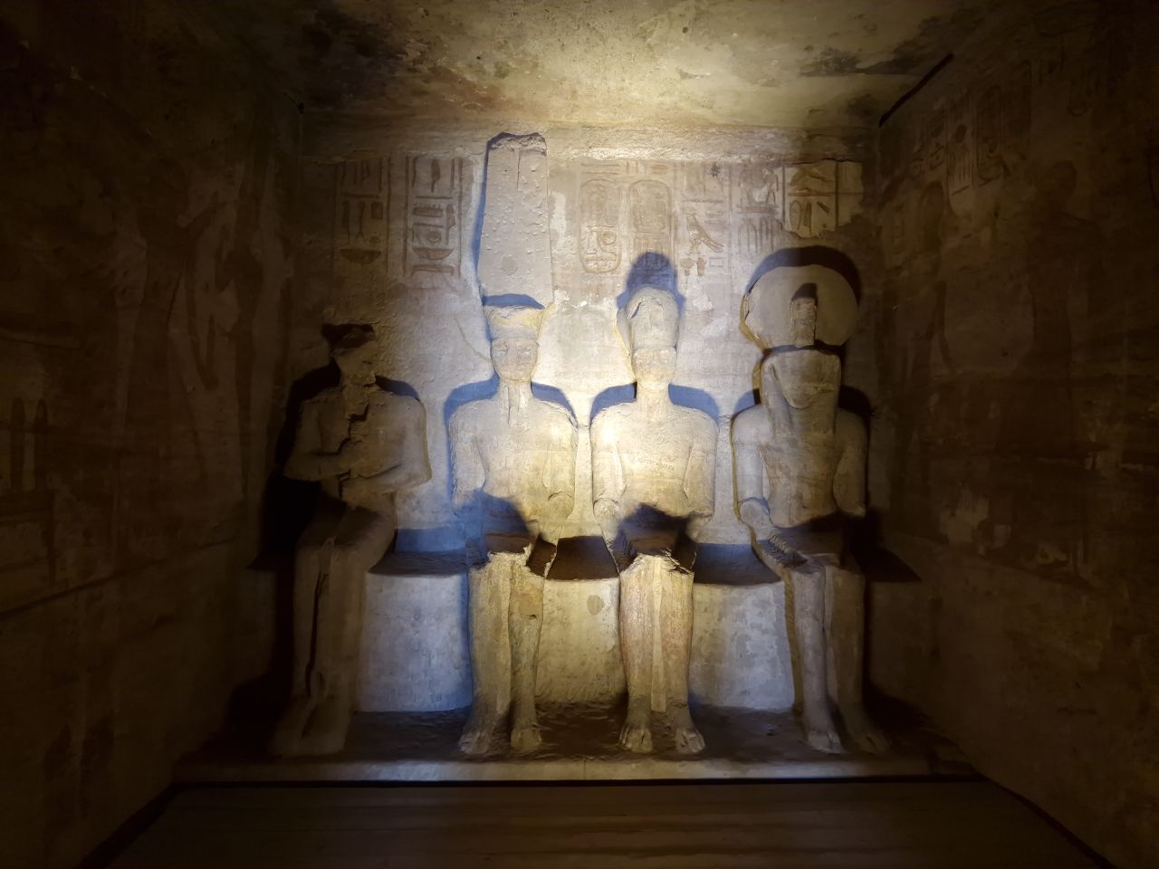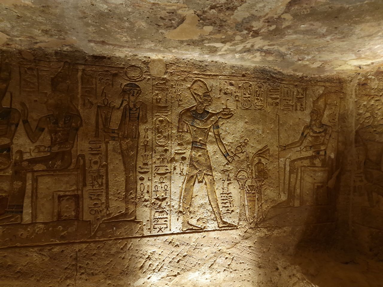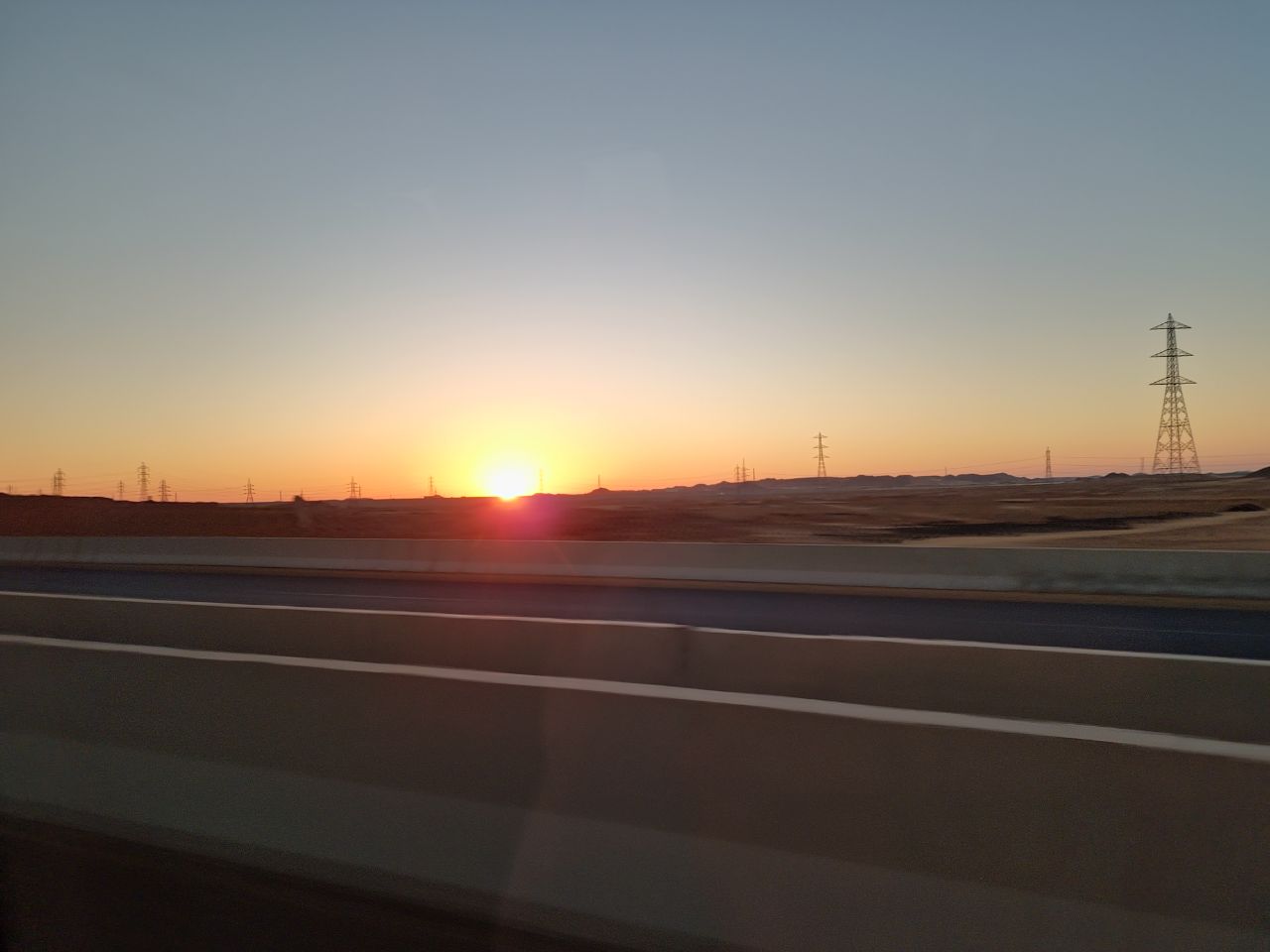 We vertrekken vanochtend om 4 uur. Het is 3,5 uur rijden met een minibus naar Abu Simbel. De locatie ligt aan het Nasser meer op 50 km van de grens met Soedan. Onderweg stoppen we voor een controle post en bij een cafe voor koffie en toiletten. De zon begint net op te komen als we hier vertrekken. Abu Simpel zijn 2 enorme tempels uitgehakt in een rotswand. In 1960 zijn deze tempels verplaatst omdat ze 40 meter onder water zouden komen te staan door het stijgende waterniveau van het Nasser. Ze zijn 10 jaar bezig geweest om het hele complex te verplaatsen. De tempels zijn voor Ramses II, hij heeft 67 jaar geregeerd en zijn vrouw Nefertari. De grote beelden zijn wel 30 meter hoog. Op de terugweg stoppen we nog een keer om wat te drinken en voor de toiletten