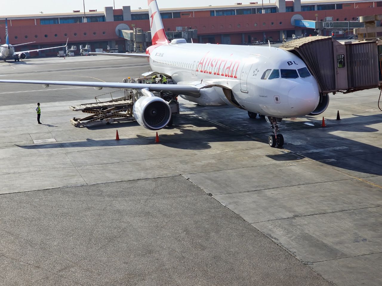 Nu nog 6 uur wachten op de vlucht naar Wenen. Het toestel waar we mee naar Wenen vliegen staat aan de gate