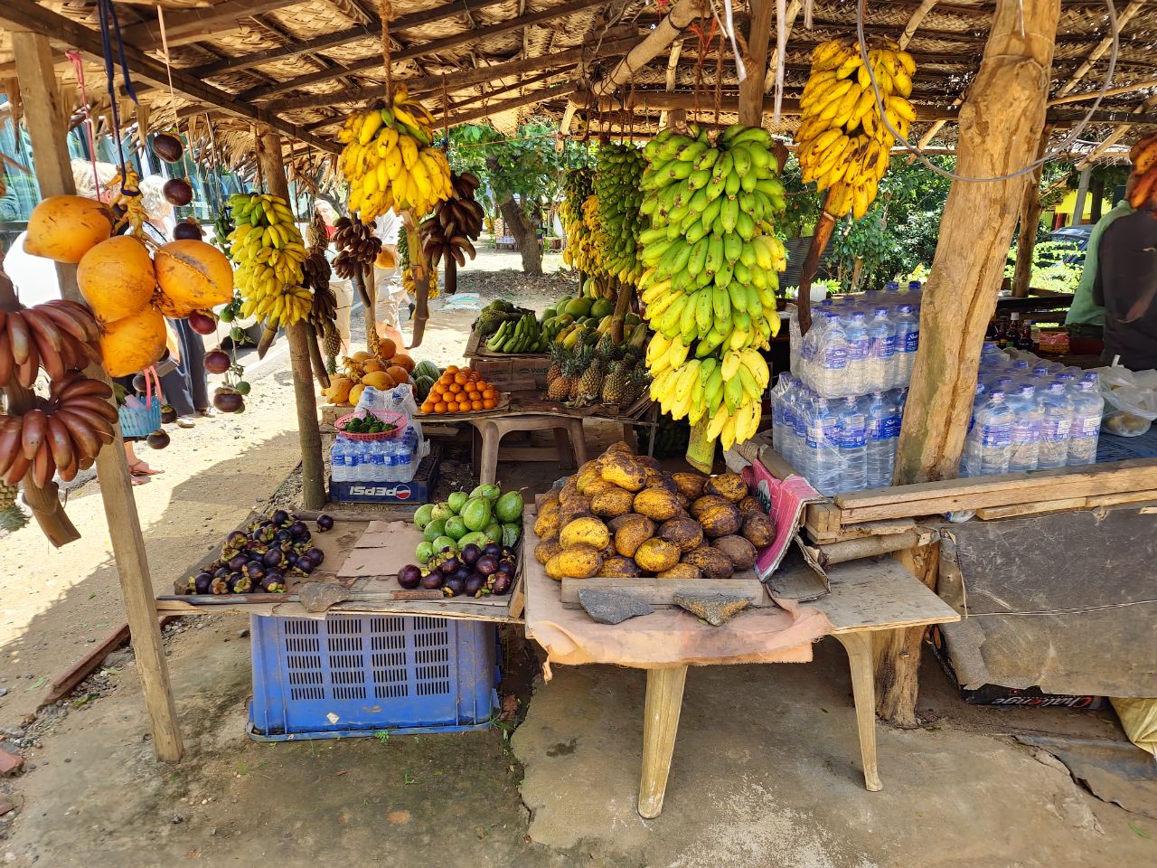 Onderweg naar Uduwalawe komen we nog langs de 2000 jaar oude Yatala stoupa. Fruitstalletje langs de weg. In het baby olifanten opvangcentrum worden alle baby olifanten opgevangen die hun moeder of kudde kwijt zijn.