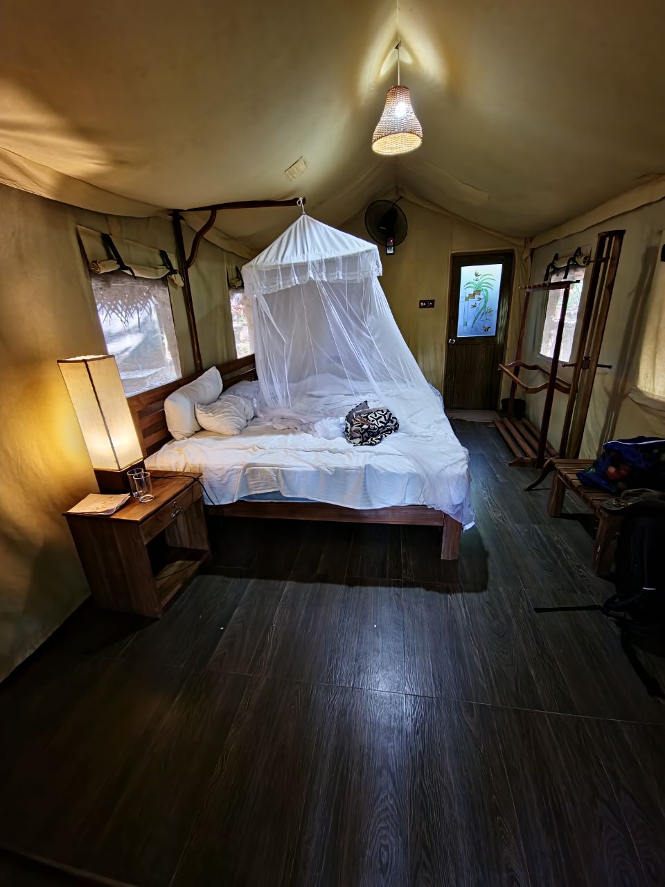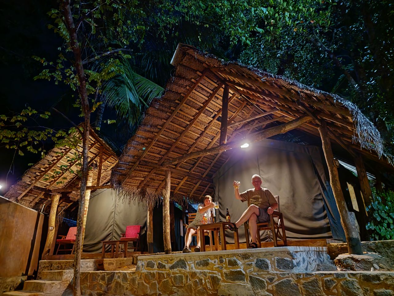 In het donker aangekomen, nog wat drinken voor de tent en daarna lekker eten. Na het ontbijt een rondje over de camping gemaakt