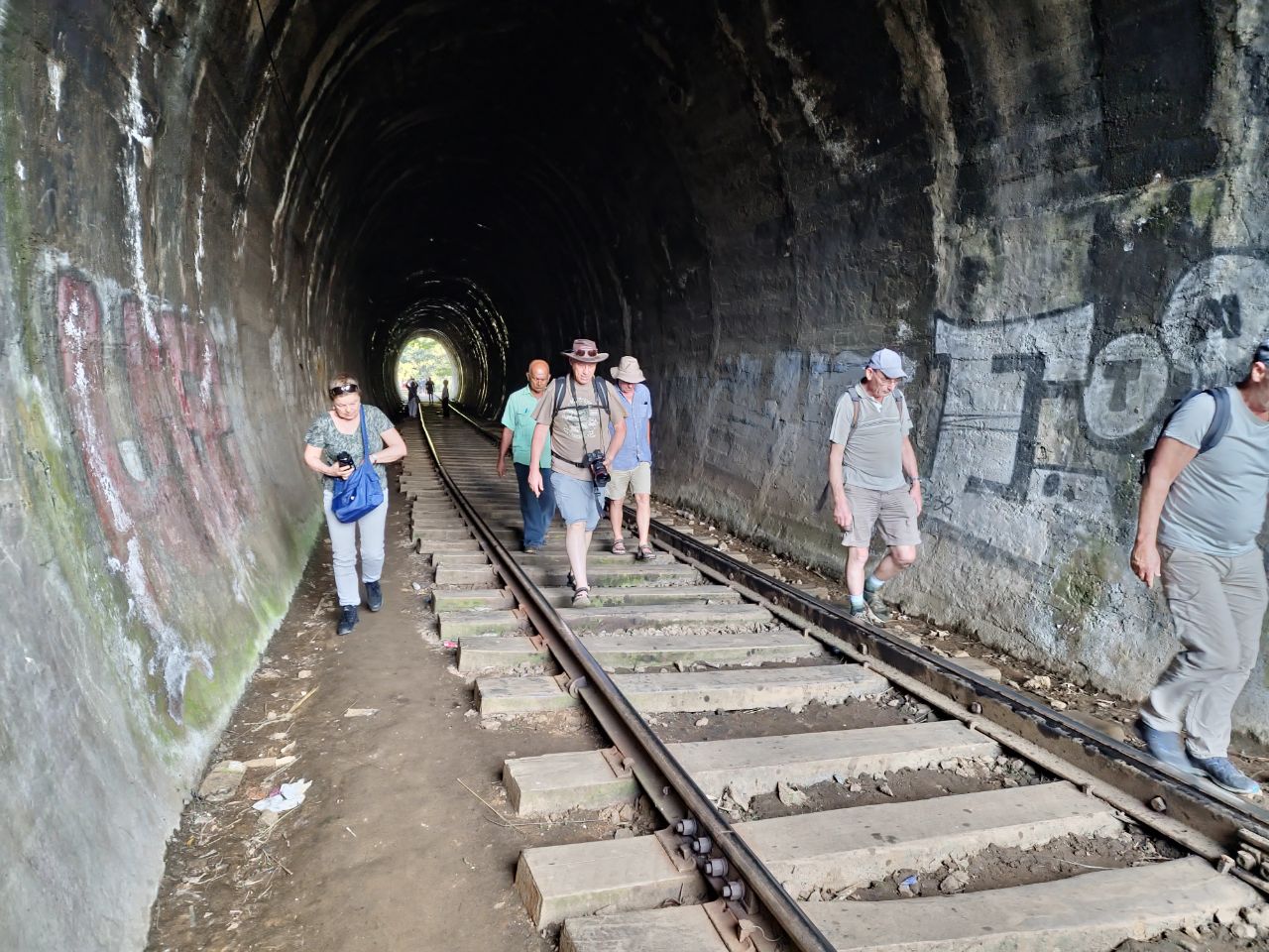 We hebben geluk dat we niet lang hoeven te wachten tot dat de trein over de negen bogen brug komt