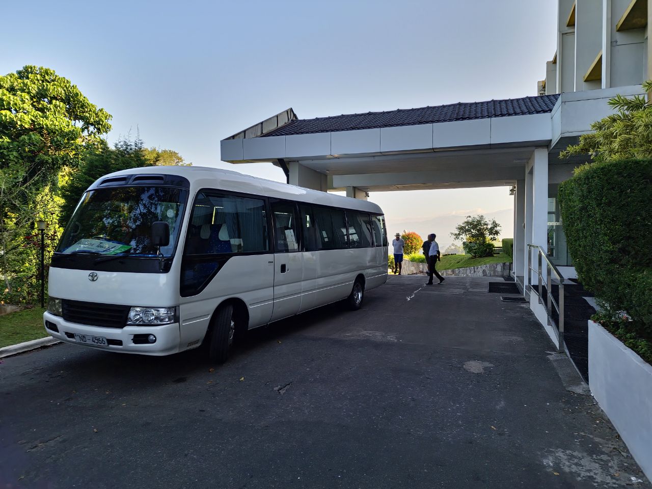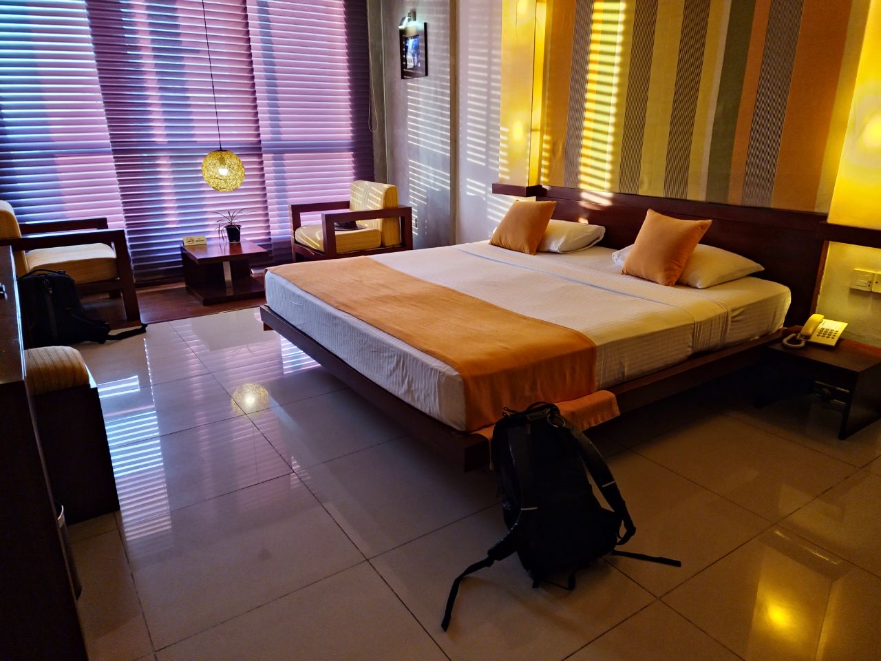 Een keer op tijd aangekomen bij het hotel. Het is maar goed dat we de trein hebben gehad, want de bus heeft vertraging opgelopen door een mechanisch probleem. De bagage is met een andere bus naar het hotel gebracht.