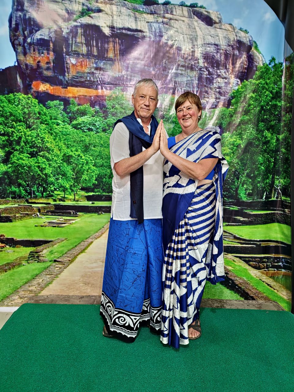 Voordat we naar de Botanische tuin gaan zijn we eerst sari's wezen passen voor een foto.