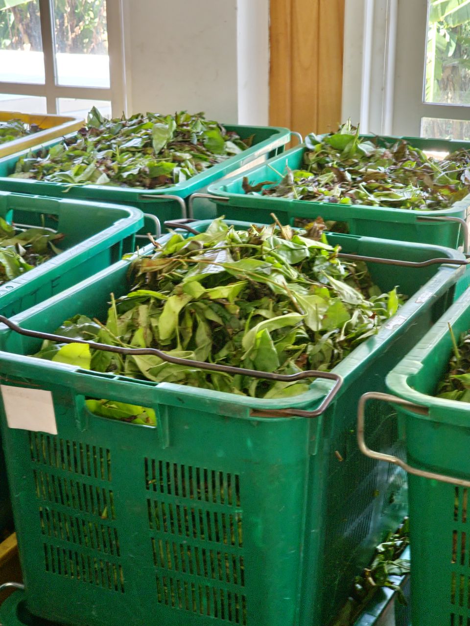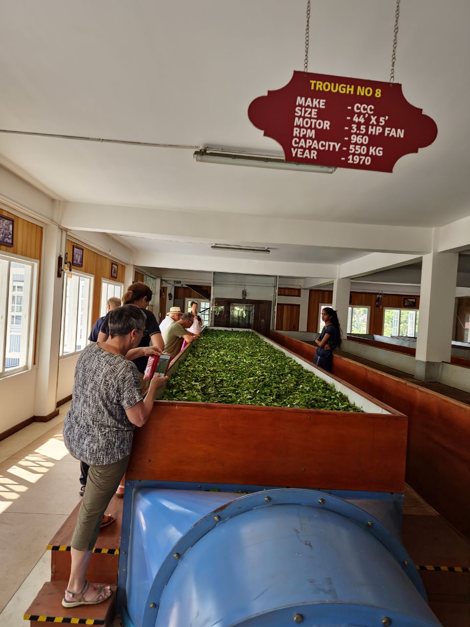 Bezoek aan een theefabriek. De theebladeren worden 20 uur gedroogd. Voor zwarte thee worden de gedroogde bladeren 2,5 uur gefermenteerd. De bladeren gaan door verschillende machines heen en worden gezeefd. Gedroogd gedurende 22 minuten bij 120°C in een hout gestookte oven. Als laatste controle wordt er op kleur gesorteerd.