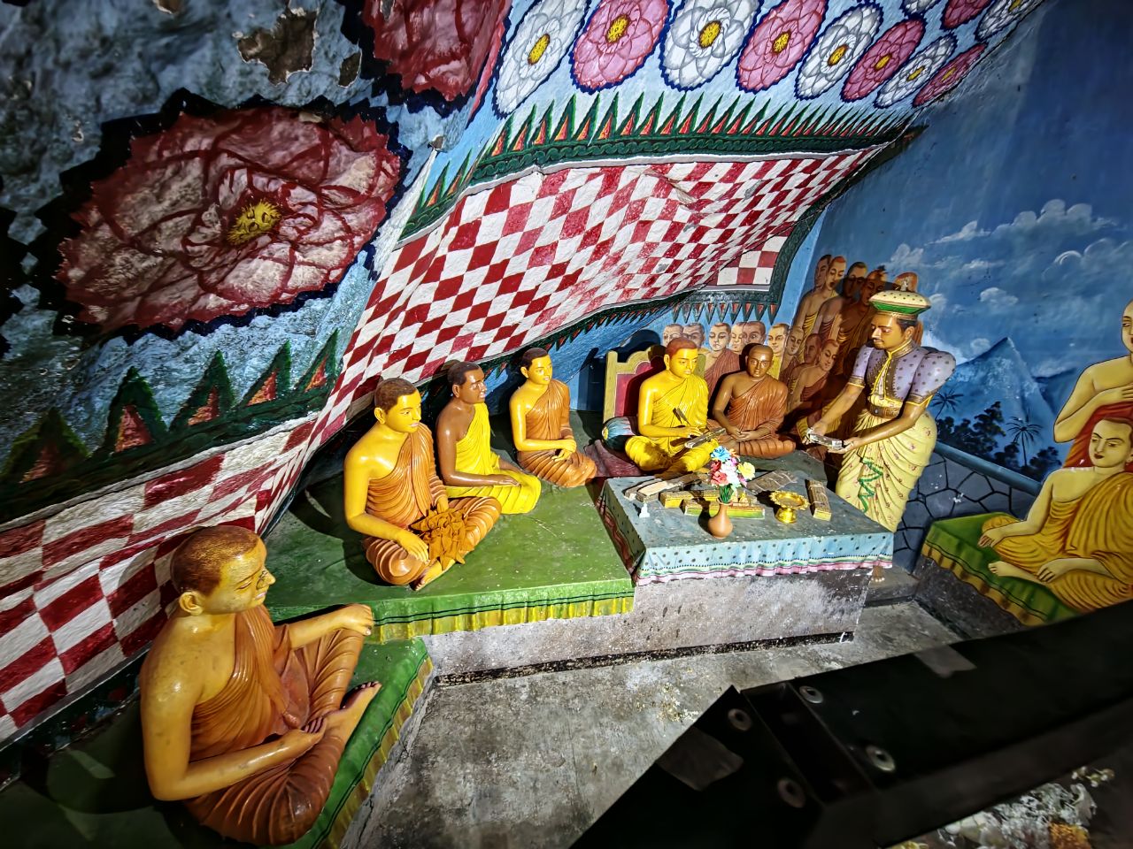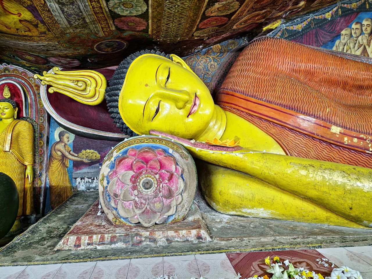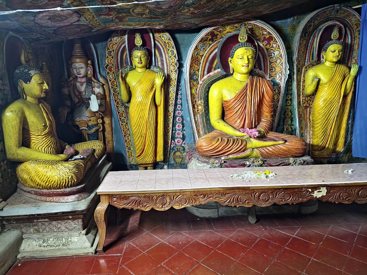 Bezoek aan Boedistische tempel Alu Vihare. Mooie tempel met verschillende ruimtes, waar onder een klooster.