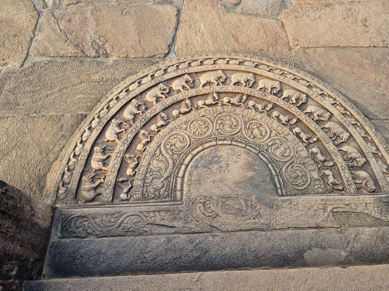 Onderaan een trap zijn maanstenen met verschillende afbeeldingen van dieren vaak een olifanten, leeuwen, zwanen. Het is de bedoeljng dat je hier je voeten afveegd.