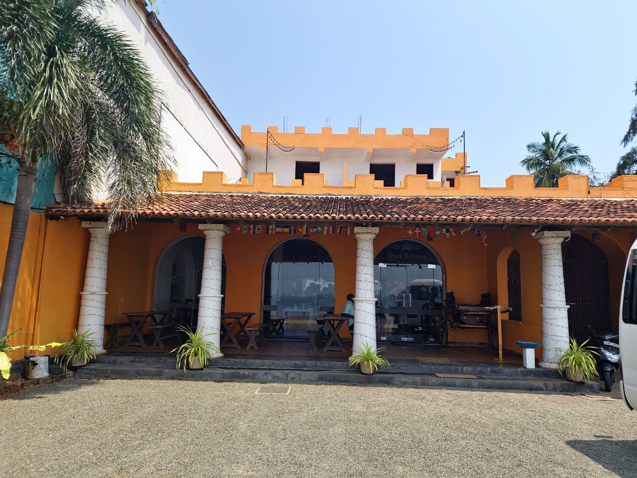 Verder komen we door de poort van Fort Frederick, dit is achtereenvolgend Portugees, Nederlands, Frans en Brits geweest. Daarna terug naar het restaurant om te gaan lunchen.