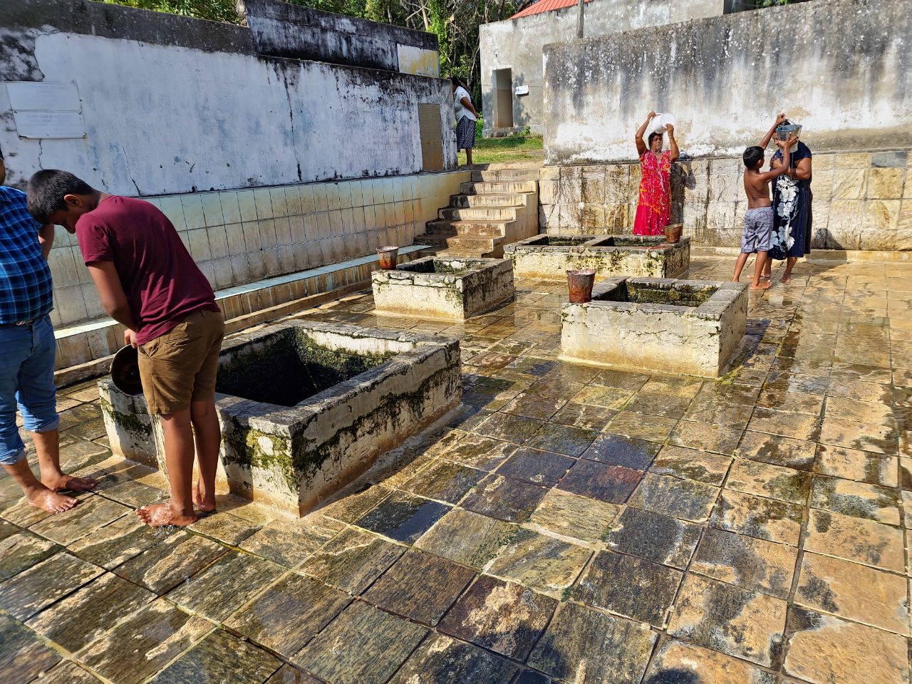 Daarna naar Kanniya warm waterbronnen. Voor we bij de bronnen zijn lopen we over een kleurrijke markt. Het zijn kleine vierkante bronnen waar helder warm water in zit. Met een emmer kan je water over je voeten of hele lichaam doen.