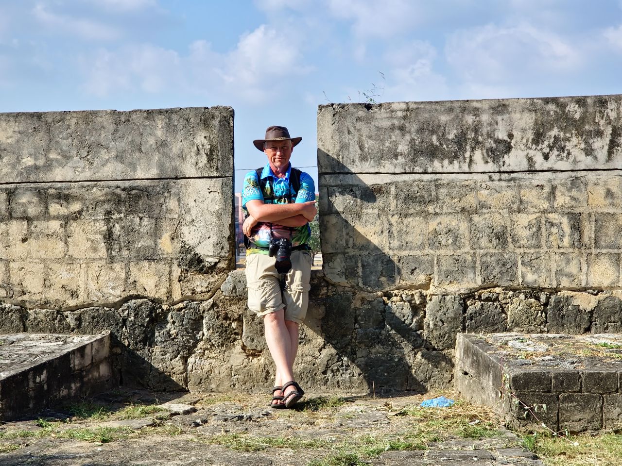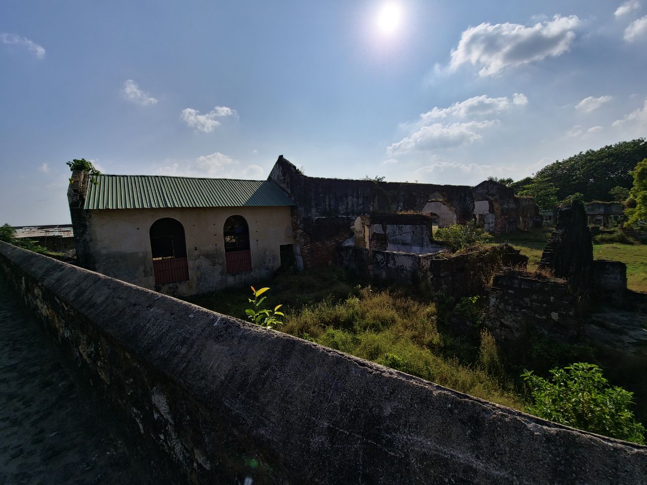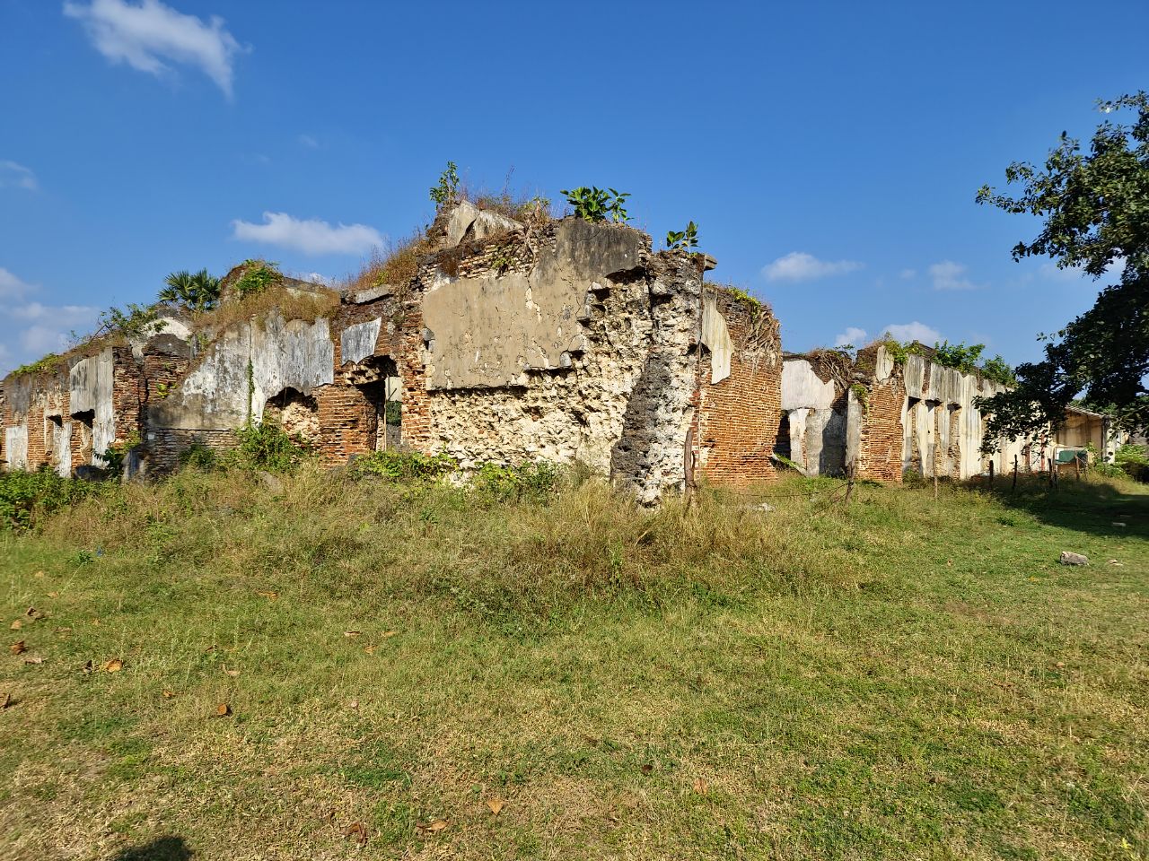 Fort Jaffna in 1616 door de Portugezen gebouwd en 40 jaar later door de Nederlanders (V.O.C) heroverd en uitgebouwd. Binnen in het fort staan enkele Nederlandse gebouwen waaronder de Kruyskerk en de ruines van het huis van de gouverneur. We lopen een stuk over de bovenrand van het fort. De muren zijn zeker 2 meter dik. Kijken nog in de wapenkamer, deze heeft een ronde bovenkant.