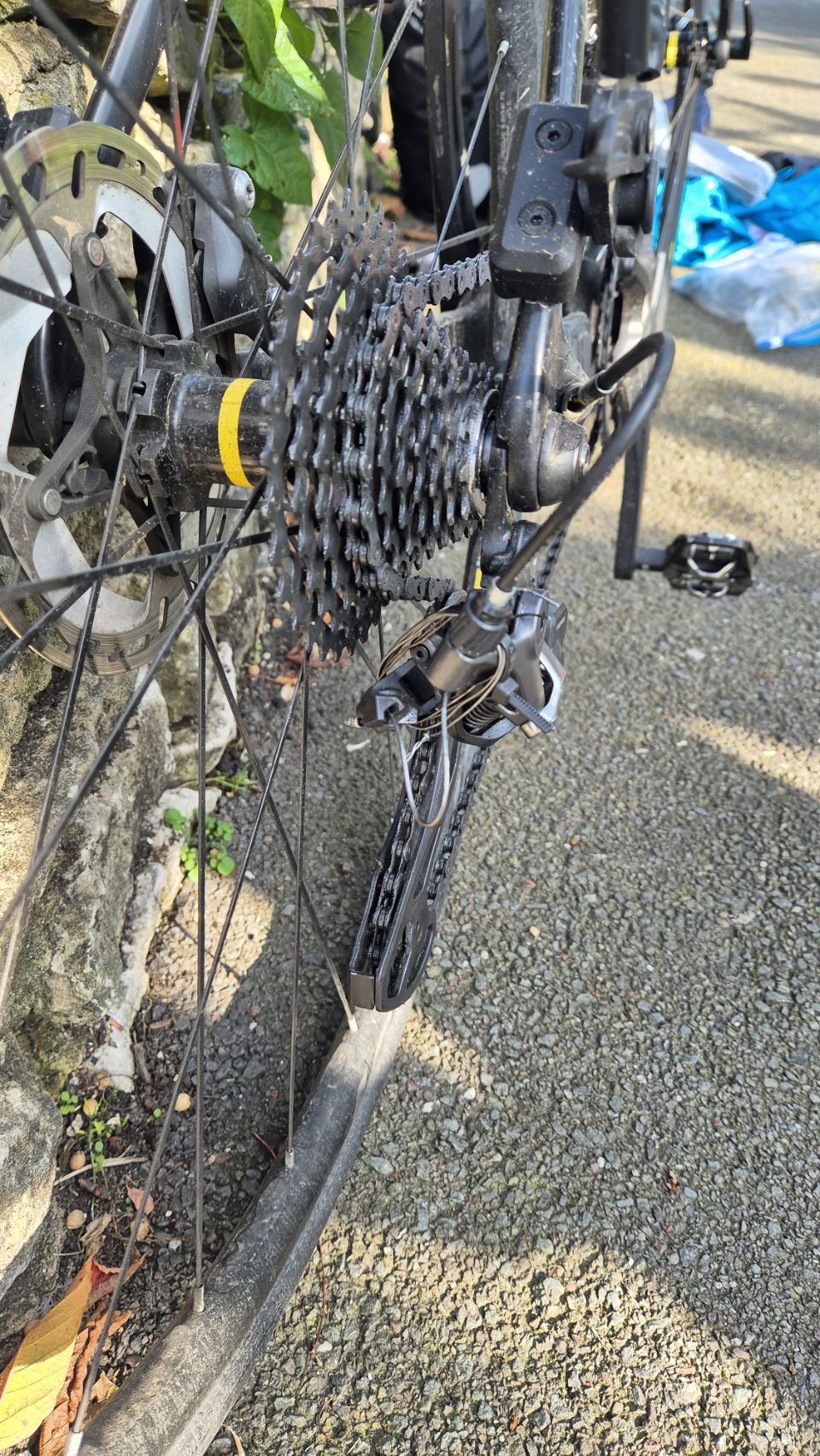 Hier, j'ai eu une petite galère : le câble de mon dérailleur arrière a cassé. J'ai dû fixer le dérailleur sur un seul pignon, ce qui m'a laissé avec deux vitesses : une pour les côtes et une autre pour aller un peu plus vite sur le plat. Cependant, la vitesse pour les côtes n'était pas la plus adaptée pour grimper, et celle pour aller vite n'était pas vraiment rapide.