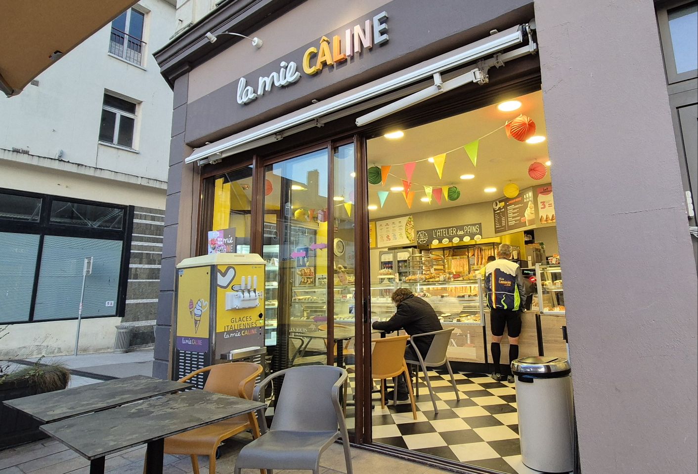 Le manque de sommeil c'est ressenti... j'ai bien tenté de dormir sur le vélo mais il faut suivre la route... seulement une petite sieste de 15 minutes dans l'herbe et réveillé par l'humidité qui tombait 😴🚴‍♂️🌿 6h45, La boulangerie de Nogent le rotrou était bien venue 🥐🥖🍞