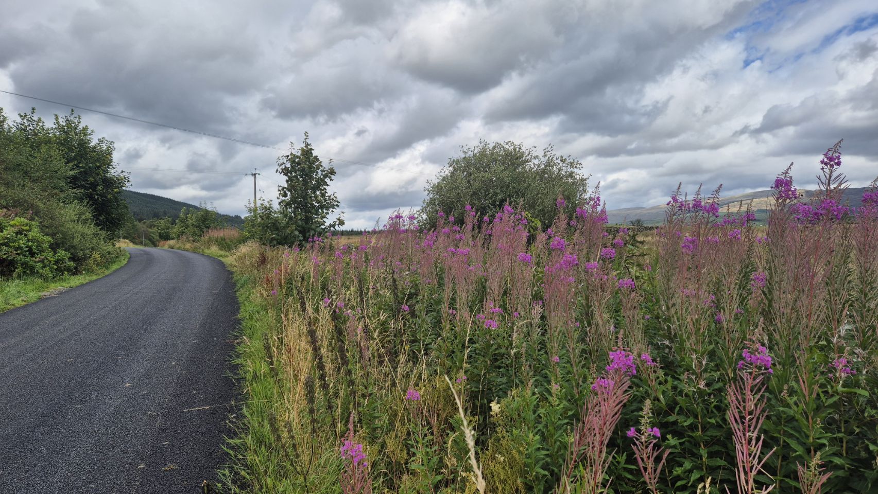 Il est 13h30, et je viens de prendre trois photos pour me souvenir de l'endroit où j'ai mangé. J'ai une petite journée devant moi, avec seulement 110 km à parcourir jusqu'à mon prochain hôtel. Je m'apprête à emprunter une petite route qui serpente dans les collines, venant de l'autre côté. La météo est bonne pour l'instant, mais elle peut changer rapidement, et je n'aimerais pas affronter une autre tempête. Le paysage est très agréable, mais je ne sais pas vraiment à quoi m'attendre pour la suite.