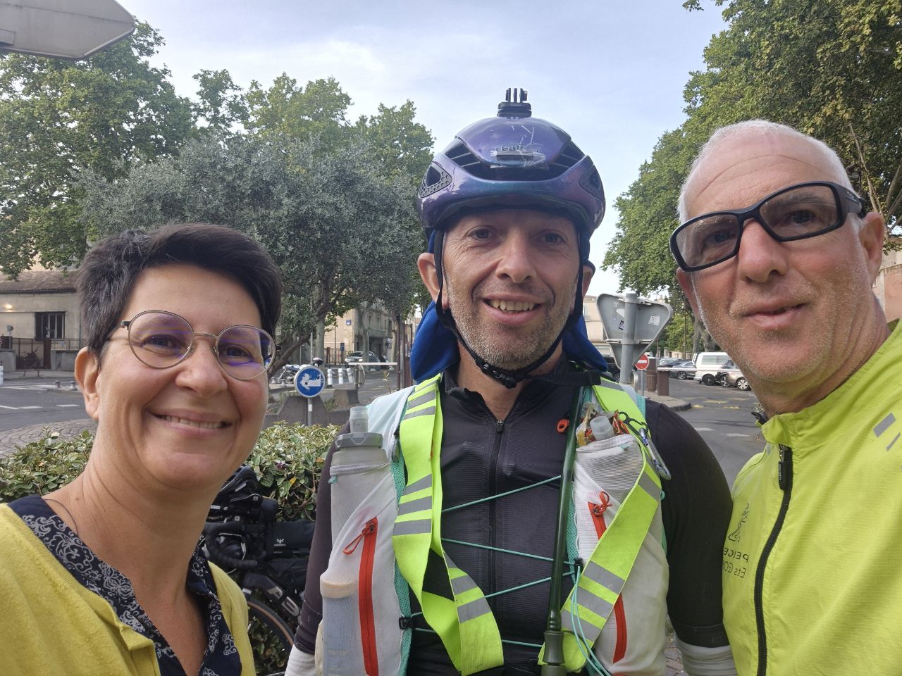 Je suis arrivé à Pézenas environ deux heures après mon départ de Béziers, avec le moral complètement à zéro. Et puis, d’un coup, un petit rayon de soleil : j’ai croisé une concurrente 174 kristina sur la route, alors que j’étais tout seul dans la pampa. J’ai trouvé un bar où j’ai pu prendre un café, et là, stupéfaction : j’ai retrouvé Robert, avec qui j’avais passé le Tourmalet. On a aussi rencontré une supportrice de la TCR qui nous suivait et qui était venue à la rencontre de Robert après l’avoir repéré sur l’application. Tous les trois, on a pris le café ensemble avant de reprendre la route. Ce café m’a fait du bien et m’a redonné un peu de forces. Et par chance, j’ai réussi à charger mon tracker : peut-être que le problème est enfin derrière moi. Maintenant, je repars en direction de Montpellier, avec l’espoir que Didier m’y offrira un café.