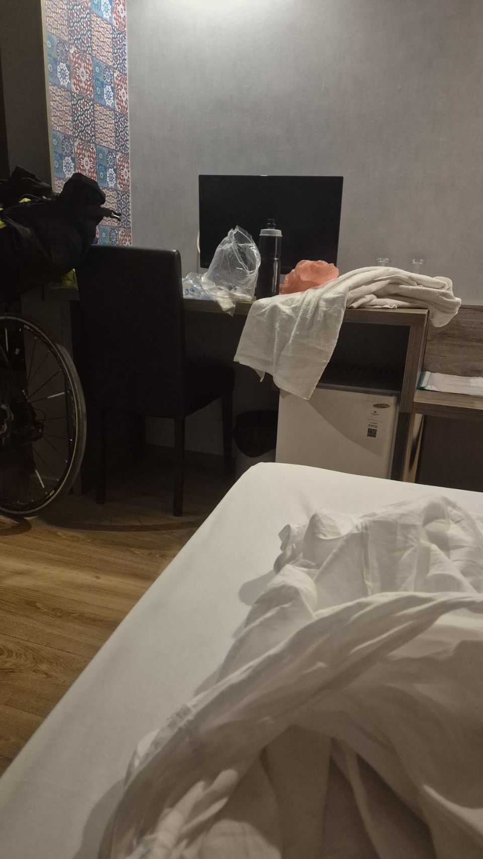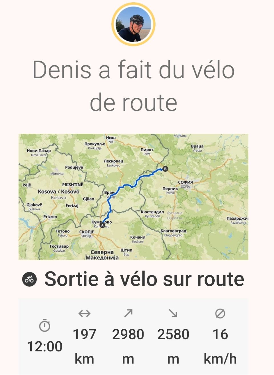Au final, j’arrive au nord de Sofia. J’ai trouvé un hôtel juste avant la tombée de la nuit – heureusement, car d’après mes infos, après c’est le désert. La journée se termine avec 200 km au compteur, mais tout est cuit : les pneus, moi, la brosse à dents, le tracker dont la batterie est vide et impossible à recharger.