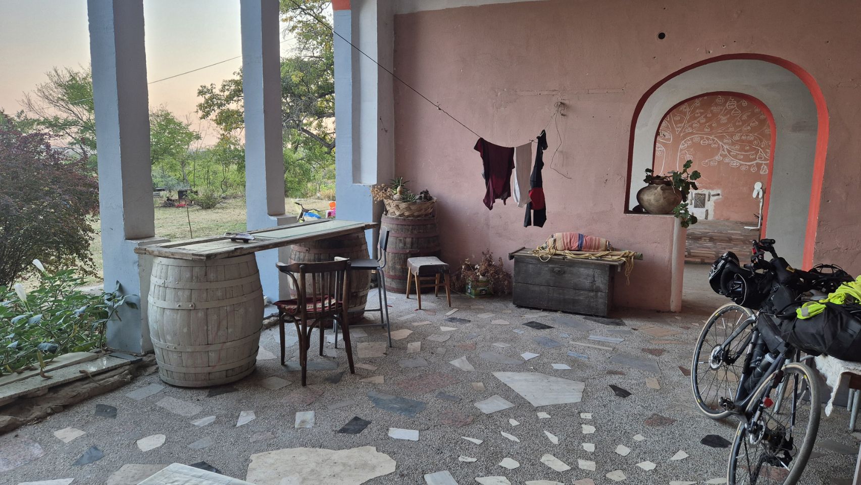 L’après-midi, je lutte contre la chaleur tombante, le vent et la somnolence. Vers 16 h 30, jackpot : une épicerie qui prend l’euro. Sandwich aux saucisses et Fanta bien sucré pour relancer la machine. Je pousse fort pendant deux heures.