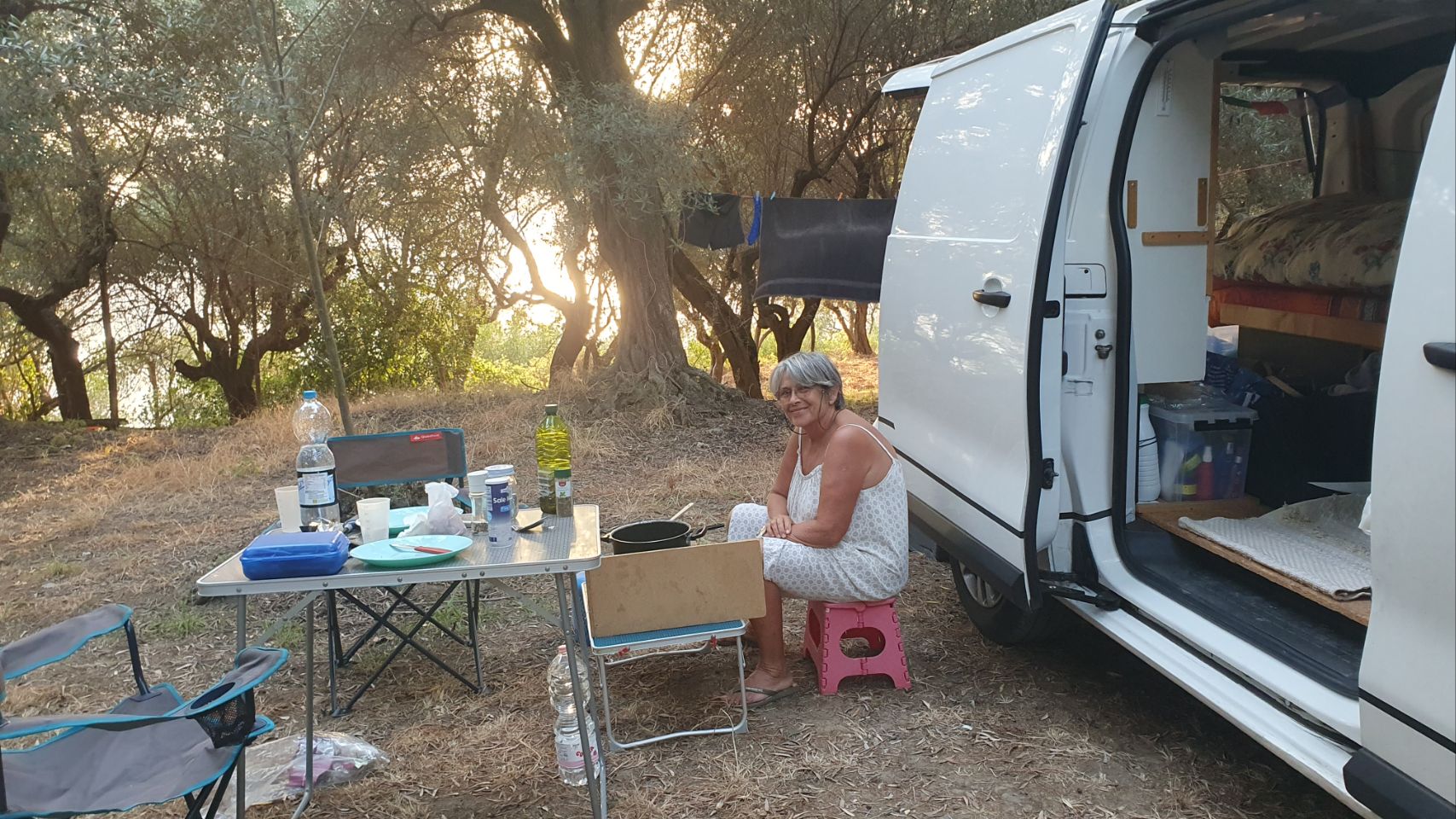 Souper et nuit dans une oliveraie