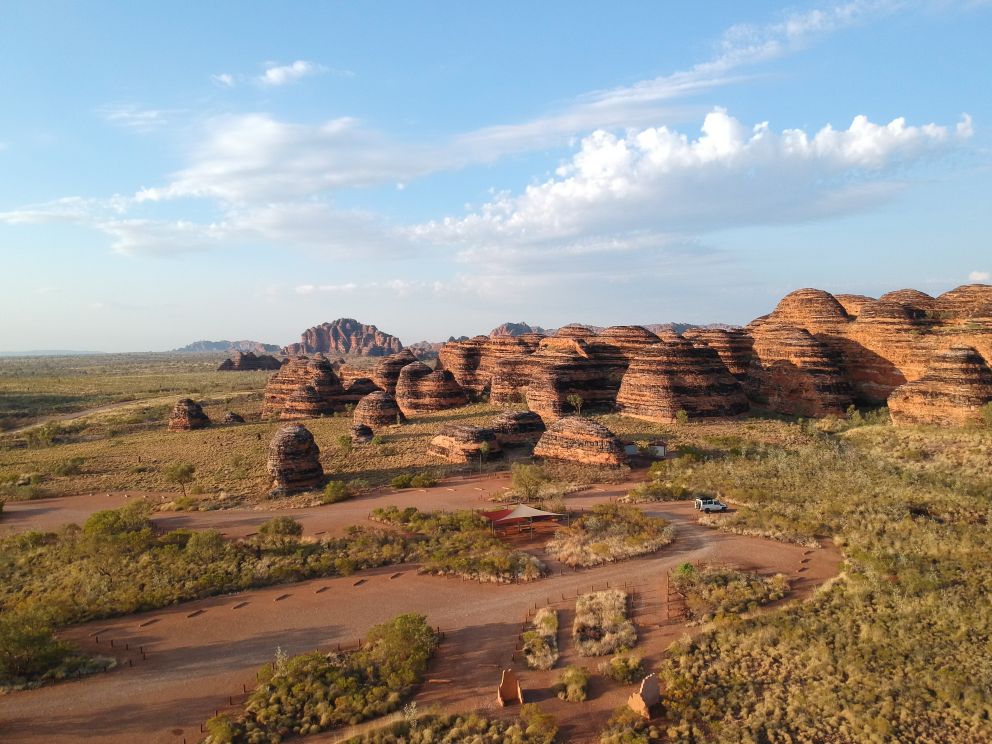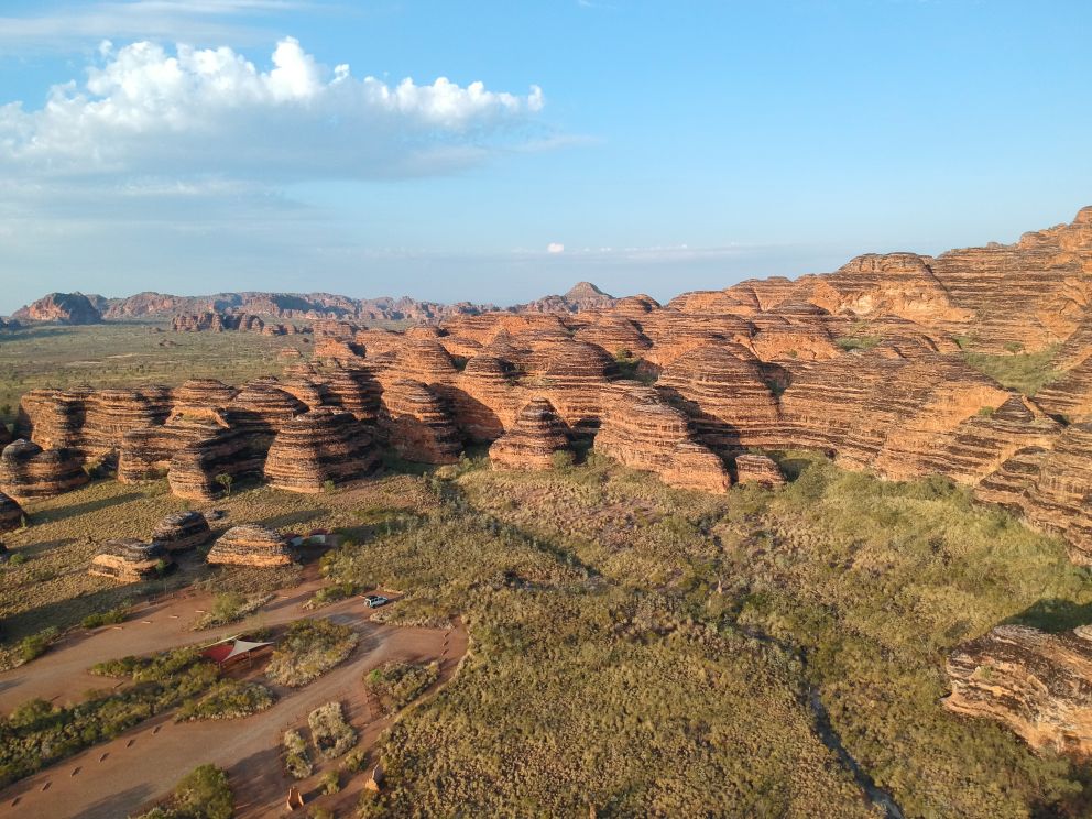 the Bungle Bungle range, sandstone deposits from 360 milion years ago. Erosion in the past 20 milion years has create multiple domes, chams and caves.