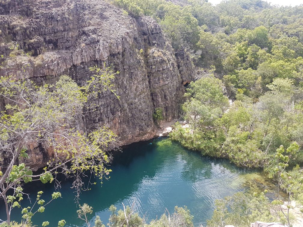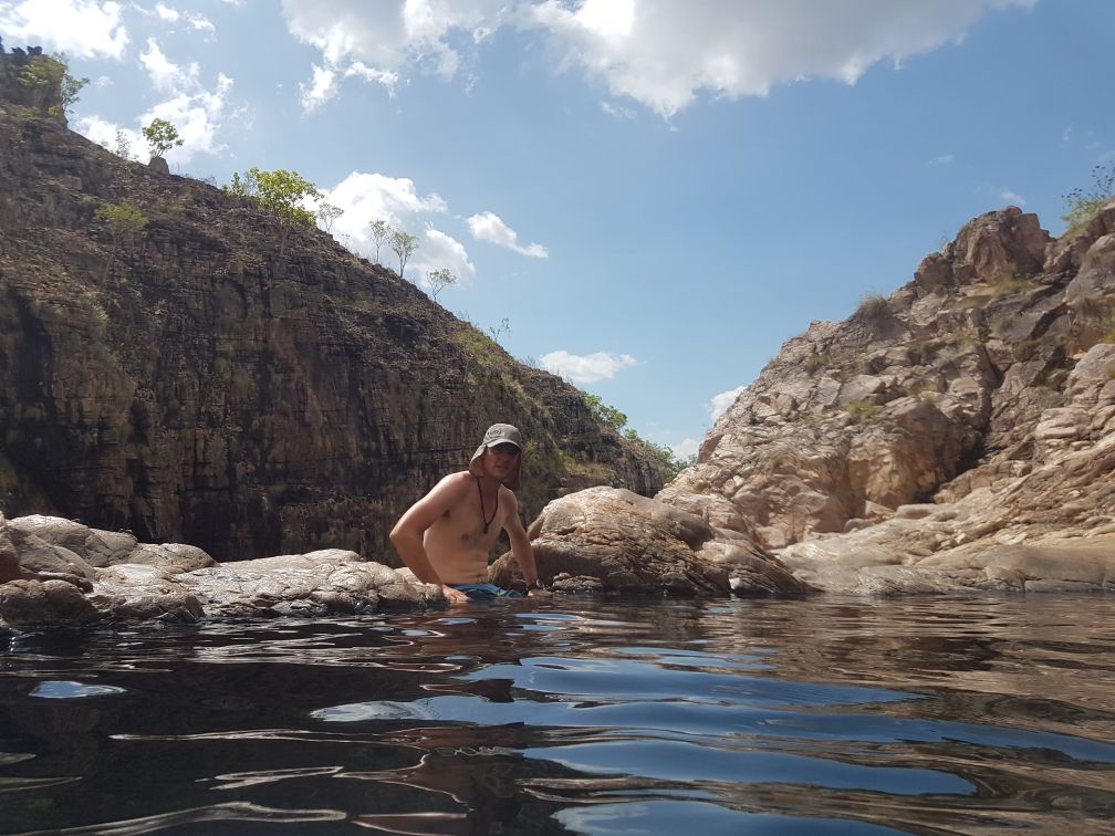 Kakadu NP, boven aan de waterval en zogenaamde natural infinitie pool, lekker gezwommen en crocodile safe.
