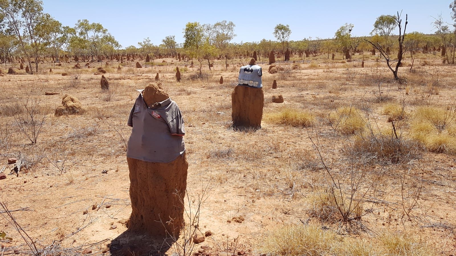termite hills, duizenden, en ze hebben hier de vreemde gewoonte om deze aan te kleden.