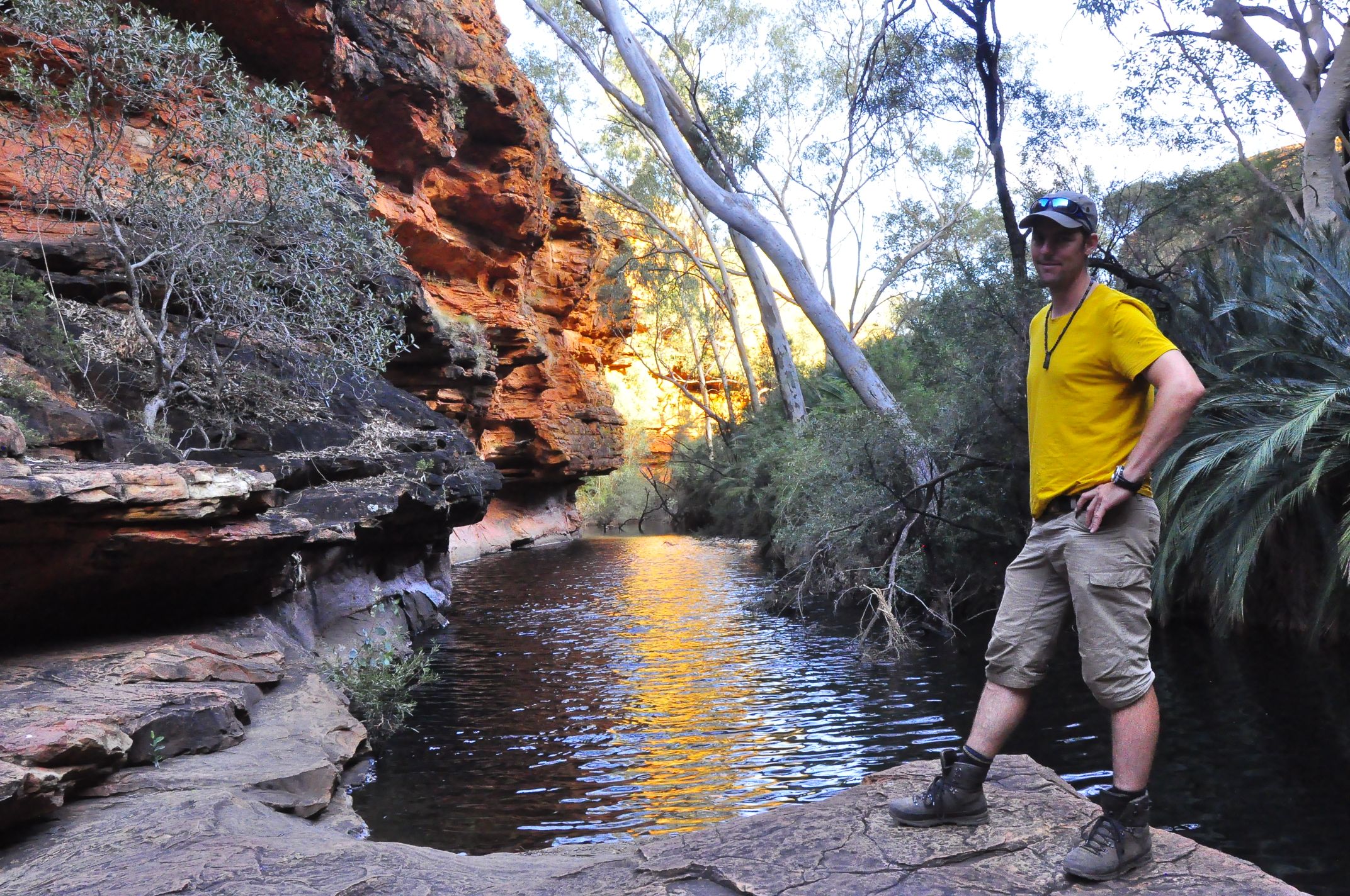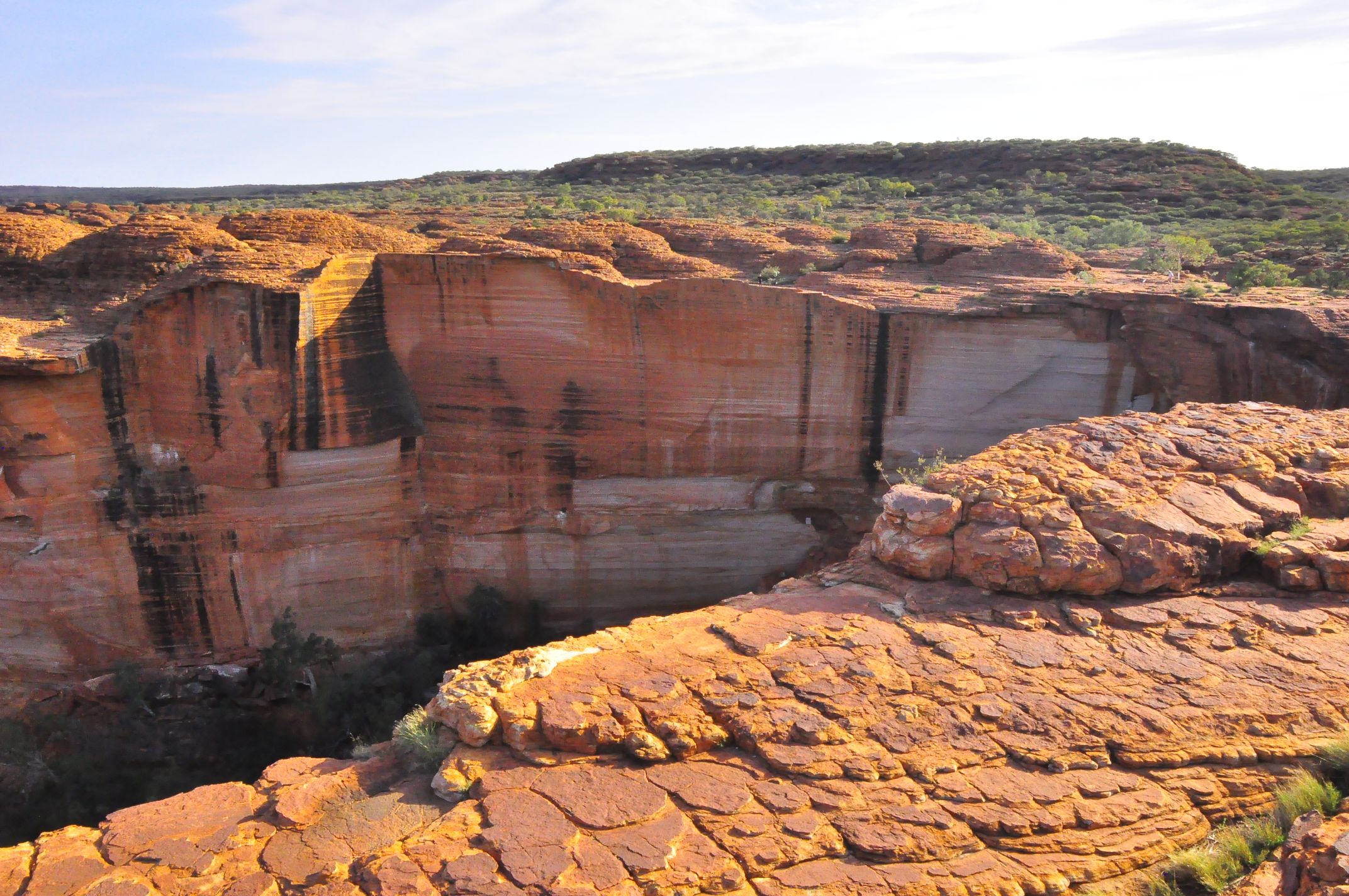 We took a 6 km walk around the rim of the canyon. Amazing sandstone chasm plunging 270 meters to the canyon floor. Hard to capture the beauty of this place by camera. Down on the canyon floor there is a permanent waterhole in the ' garden of Eden' with cycads around.