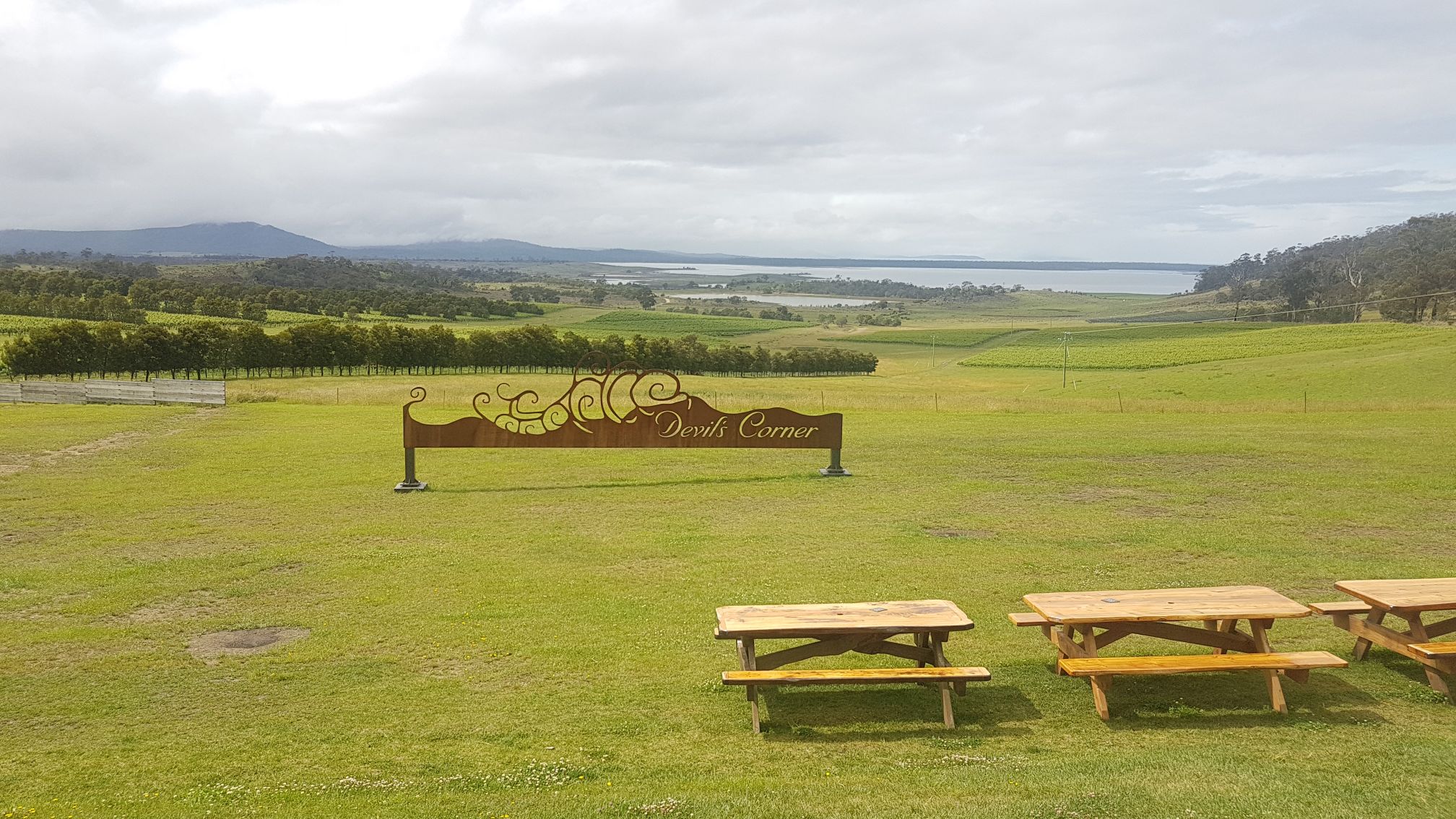 we zijn in t wijn gebied van tasmanie, tja je moet toch ergens koffie drinken op zondagochtend.