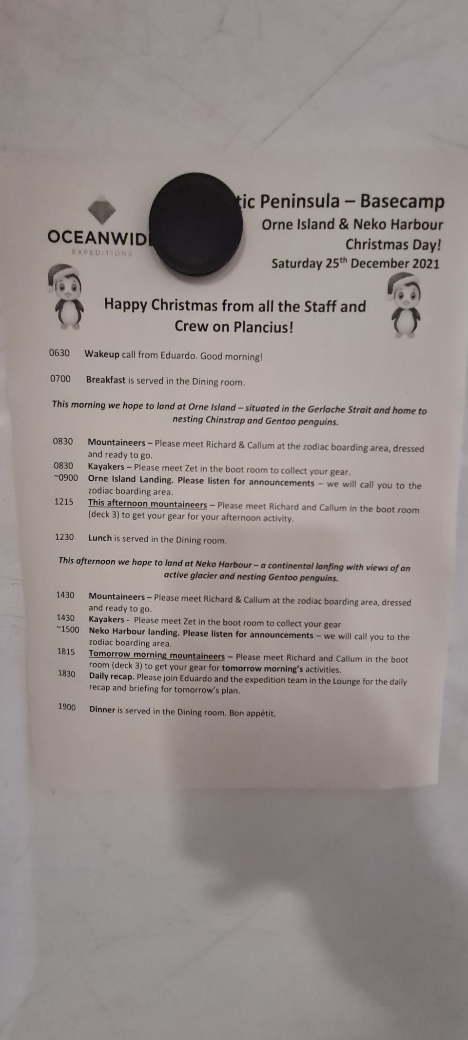 Het dagelijkse programma met de verschillende activiteiten. Voor ons mountaneering, nou ja aan een touwtje omhooglopen. Wel erg leuk!