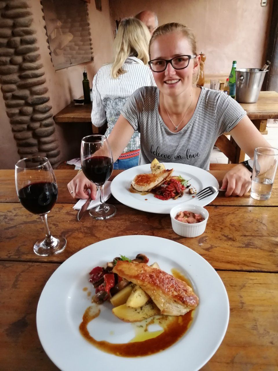 De dag na ons grote avontuur dan toch eindelijk aangekomen in San Pedro de Atacama, onze oorspronkelijke eindbestemming na de Salar de Uyuni tour. Even genieten van een goede maaltijd🍷