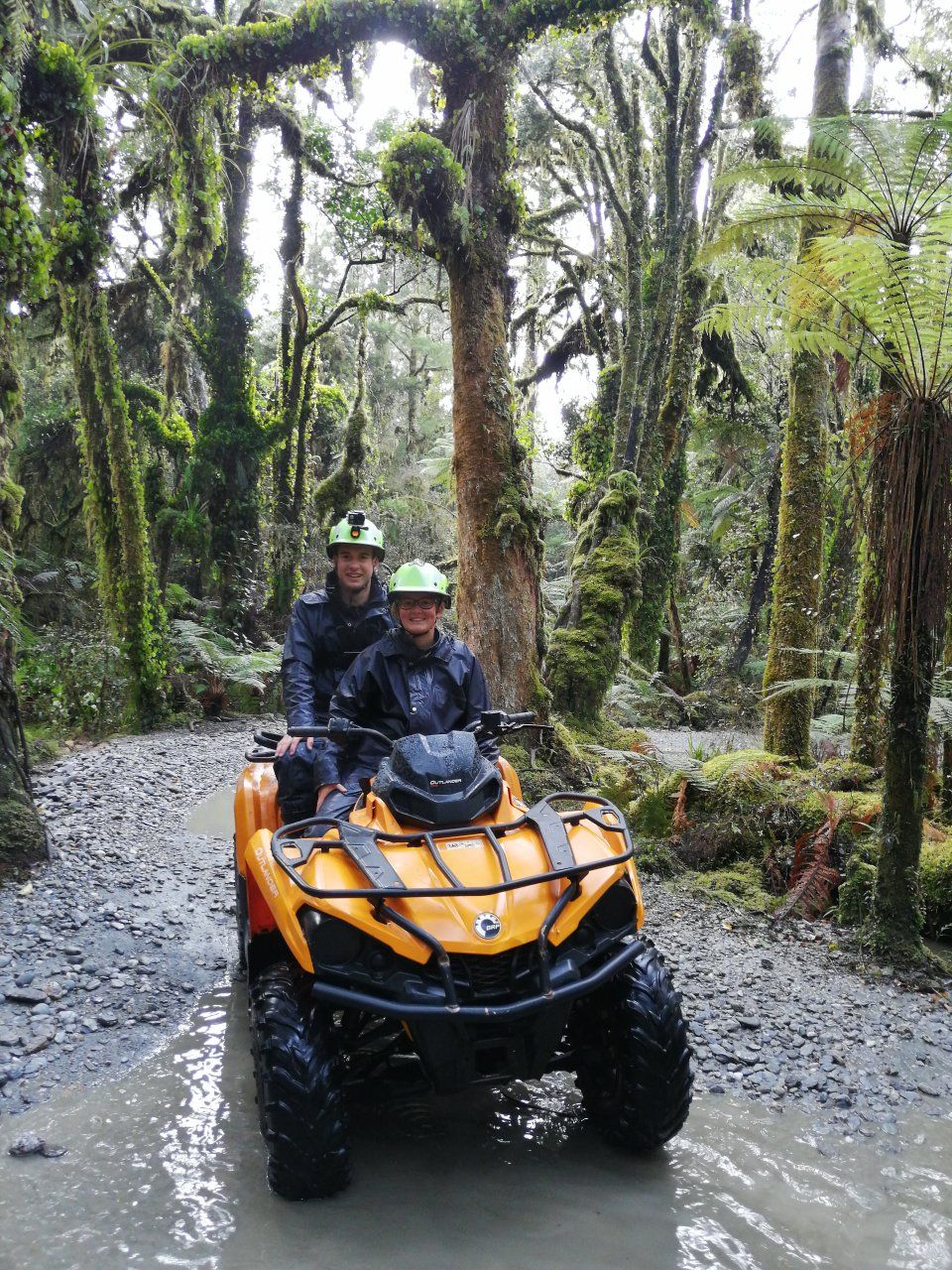 Quad cross country tour - Franz Josef. Lekker glibberen door het regenwoud en rivierbeddingen. De track was volgens onze gids eigenlijk weer aan een onderhoudsbeurt toe, maar dat maakte het er voor ons alleen maar leuker op.
