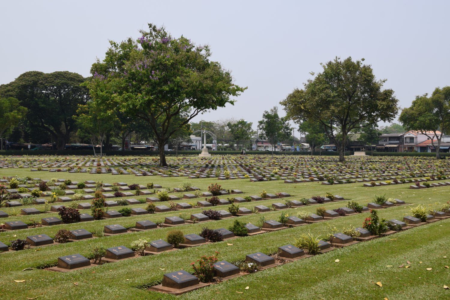 Oorlogsbegraafplaats - Kanchanaburi. Hier liggen onder andere circa 3000 Nederlandse militairen begraven, die in krijgsgevangenschap gewerkt hebben aan de spoorlijn.