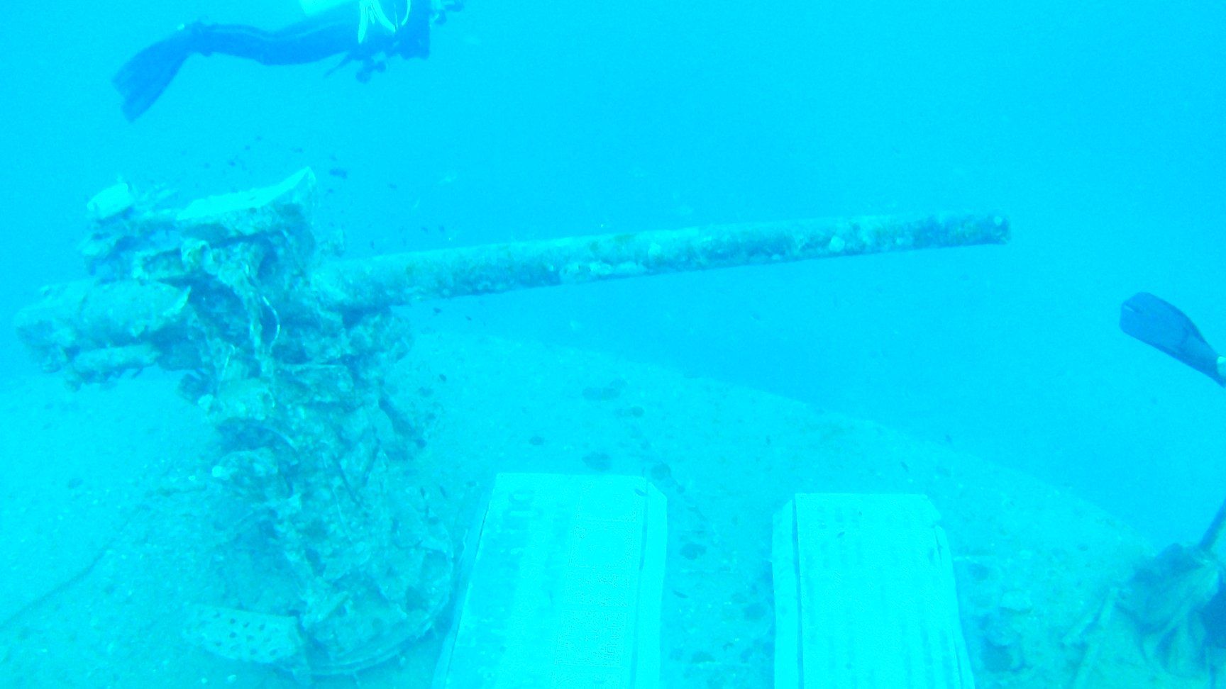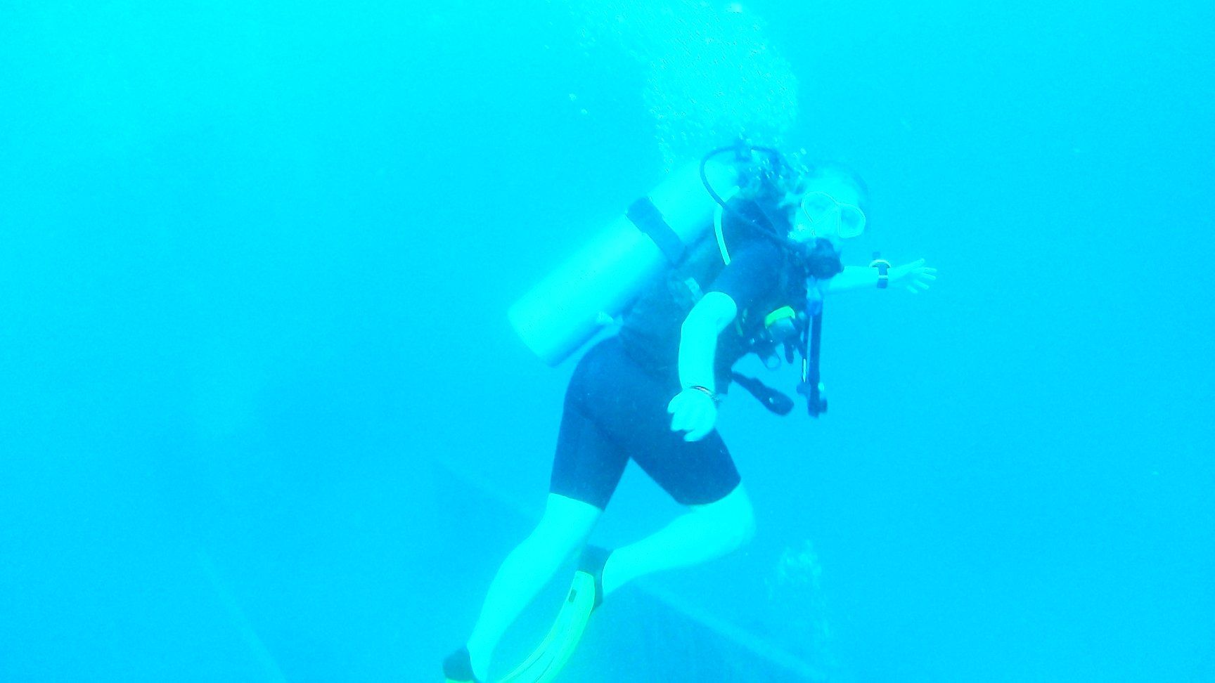 Duikcursus dag 3 - Koh Tao. Bij het scheepswrak HTMS Satakut naar 20 meter diepte gedoken. Dit was onze 3e duik van de cursus (van in totaal 4). In de middag haalden we ook ons theorie-examen waardoor we ons nu gebreveteerde open water duikers mogen noemen.