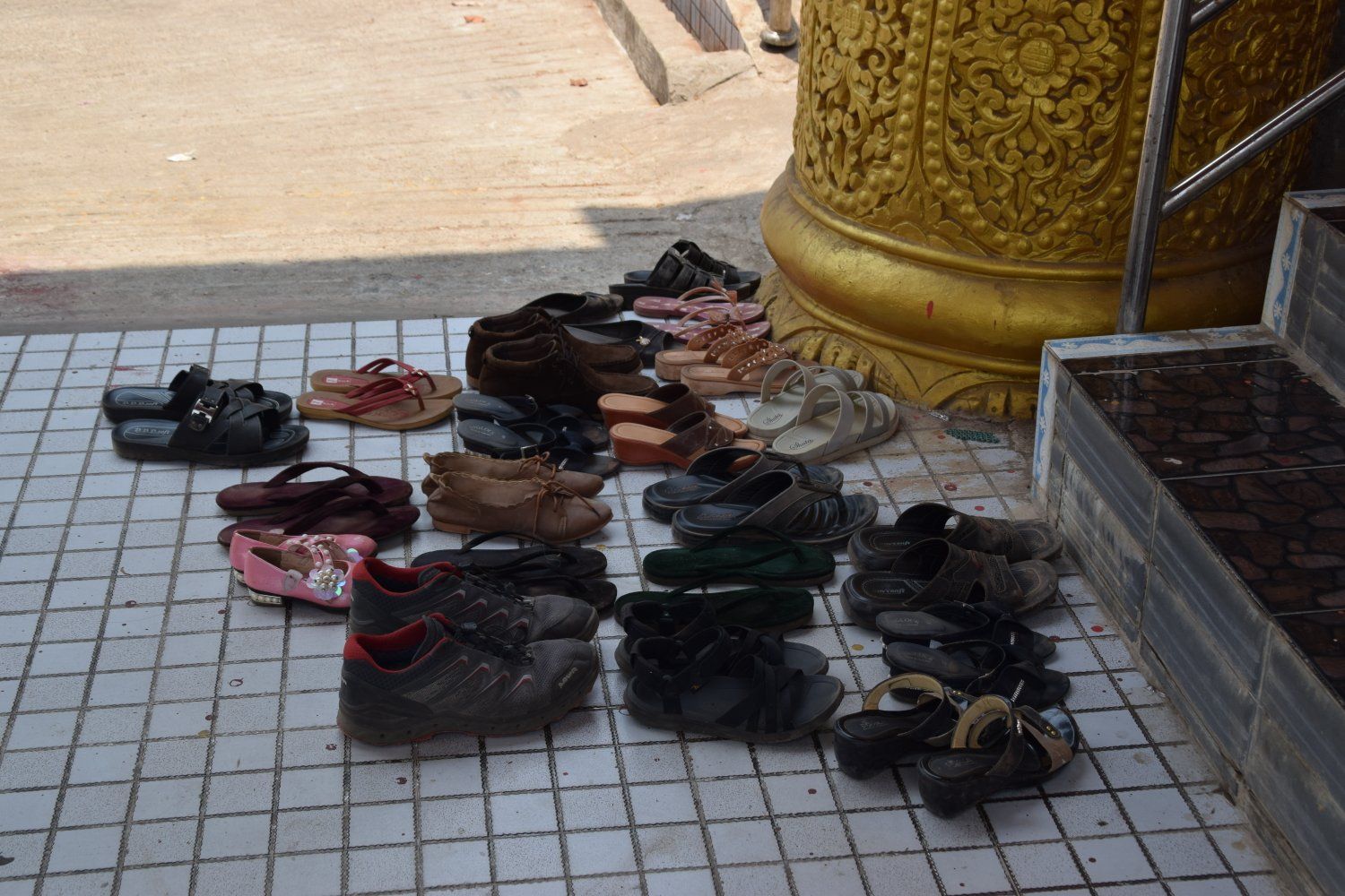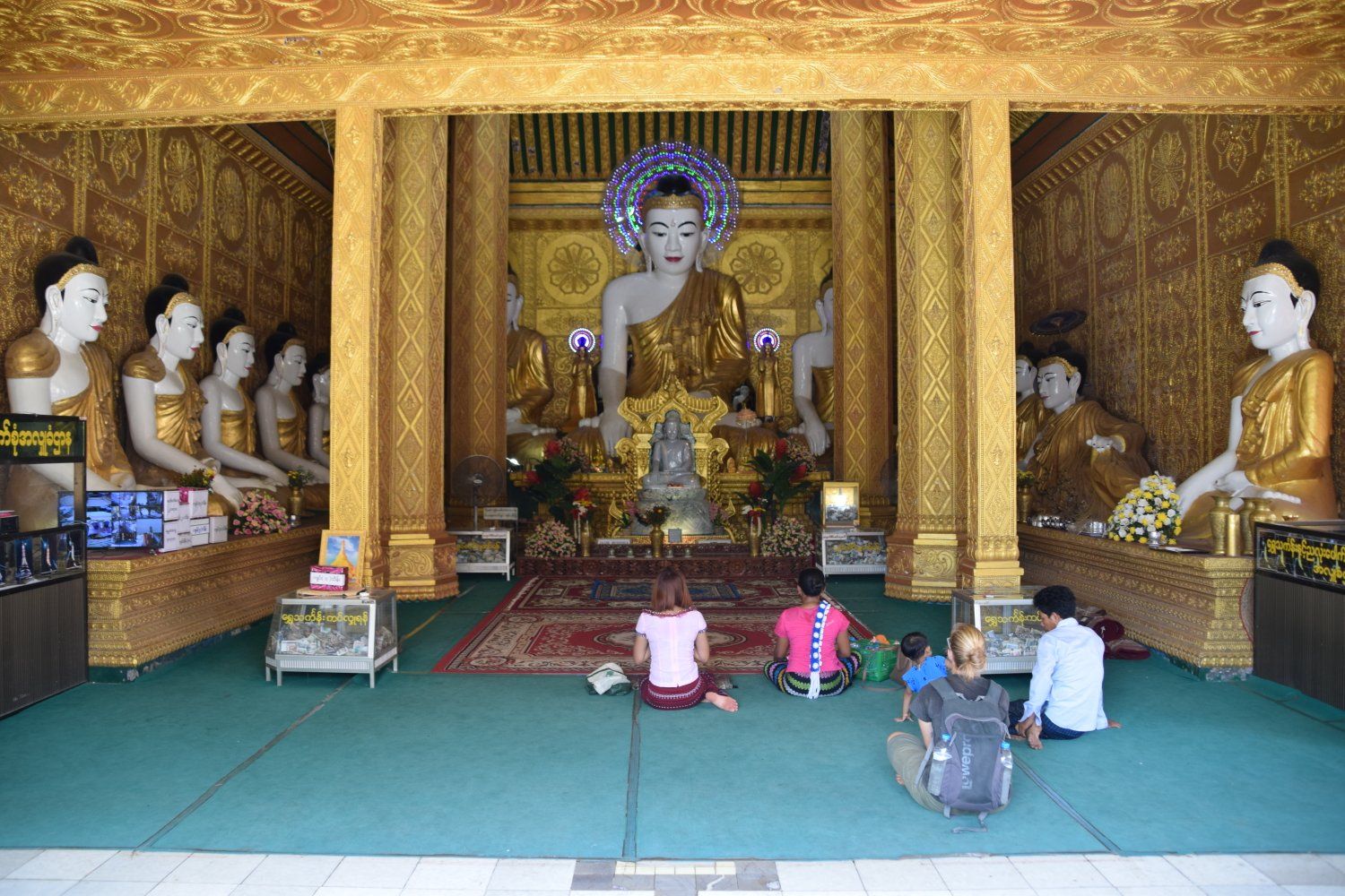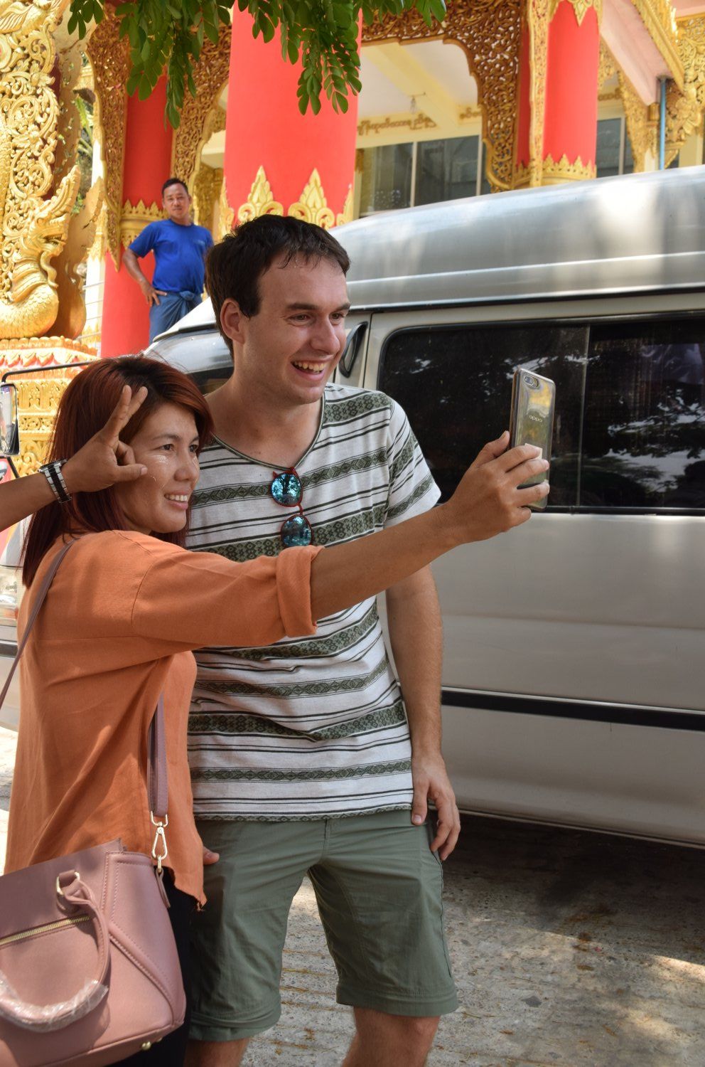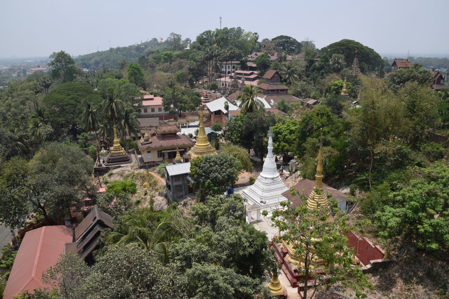 Kyaik Thalan Pagoda - Mawlamyine. De selfies doen het erg goed, we voelen ons net beroemdheden. Dagelijks willen tientallen Birmezen met ons op de foto. Sommigen durven het niet te vragen en proberen onopvallend foto's van ons te maken. Alleen valt dat nog steeds erg op. Anderen rennen naar ons toe en vragen het gewoon. Daarna volgt vaak iedereen in onze buurt (iets met schaap en dam). Wij vinden het allemaal erg grappig.