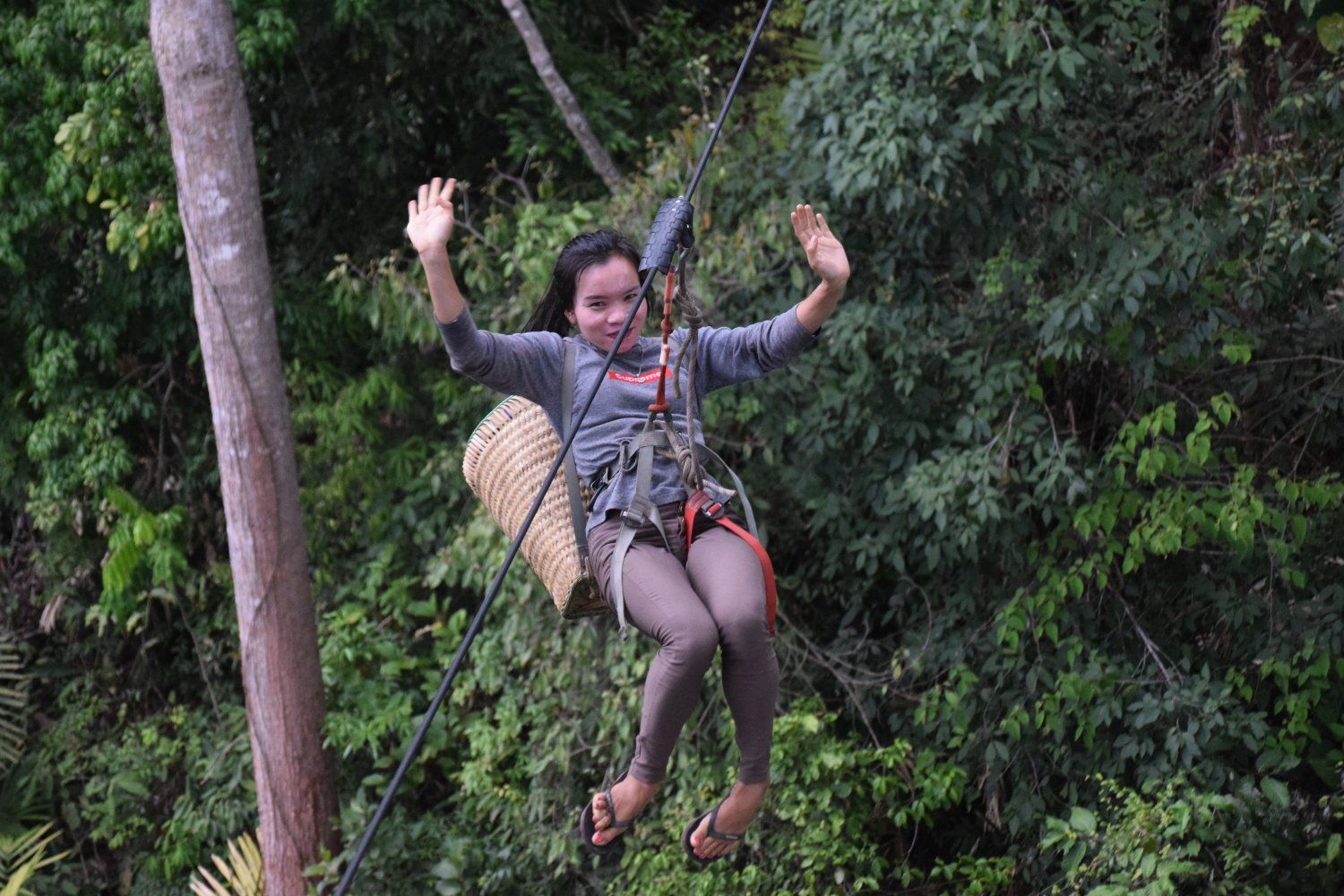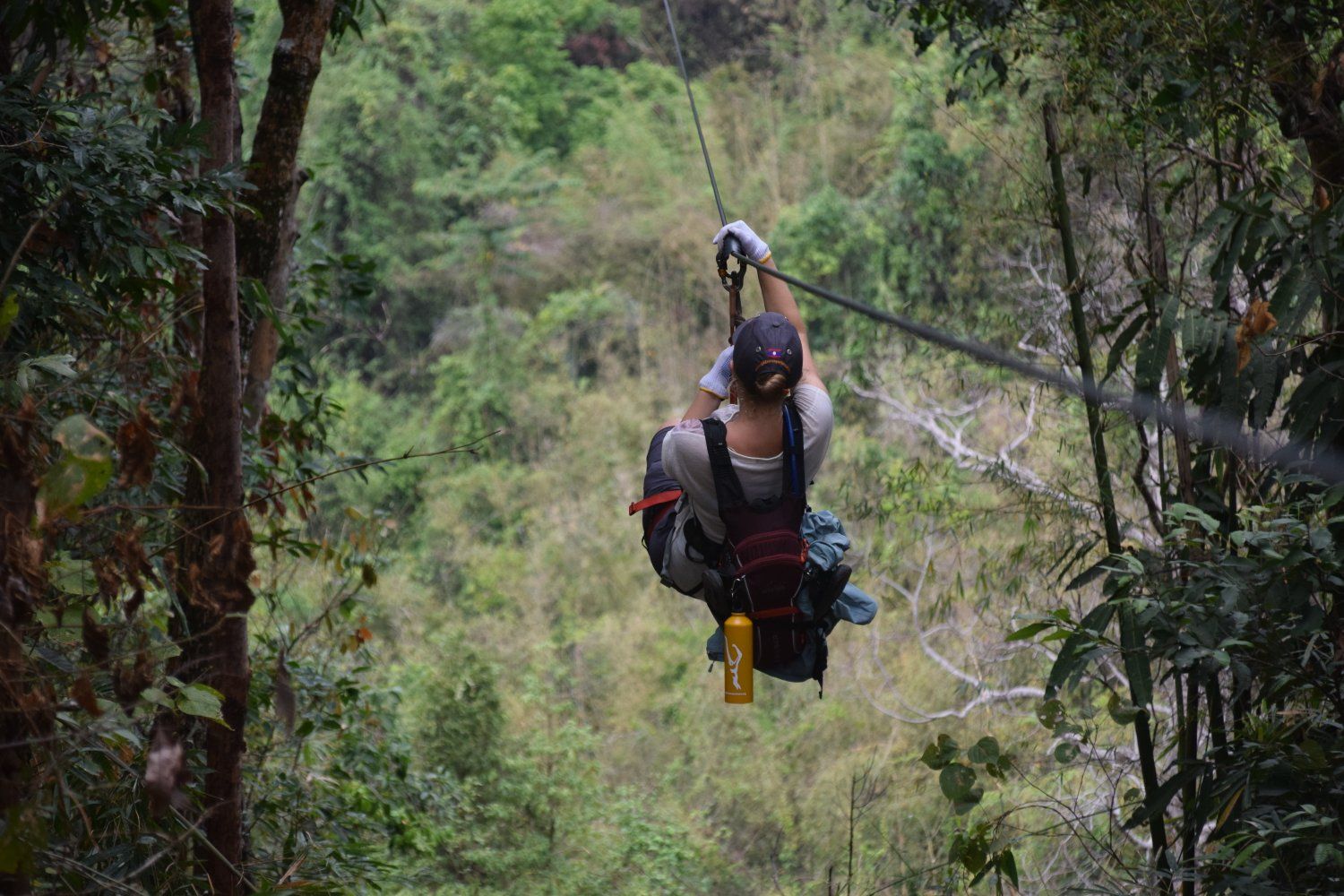 Houixai - Gibbon Expierence dag 1. Ziplinen door de jungle met prachtige uitzichten en slapen in een boomhut op 45 m hoogte.