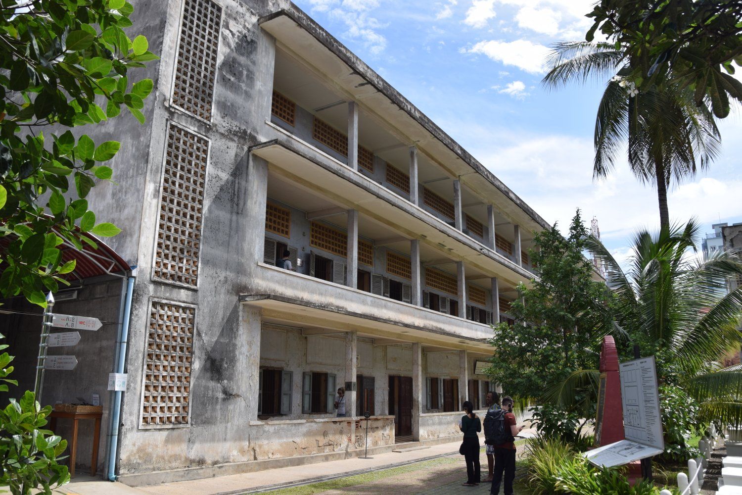 Phnom Penh - Tuol Sleng gevangenis. Voordat de rode khmer het heft in handen had genomen diende deze plek nog als een school. Nadat de hoofdstad ontruimd was werd deze school omgebouwd tot gevangenis waar zich de meest gruwelijke taferelen hebben afgespeeld.