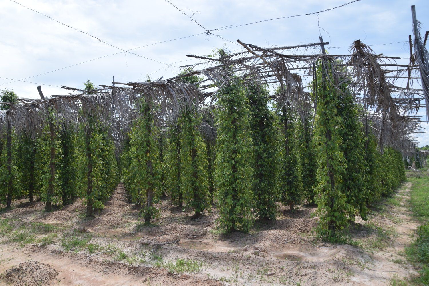 Kampot - peperplantages. De beste zwarte peper te wereld komt hier vandaan. En hoewel we niet alle peper van de wereld geproefd hebben, kunnen wij na het proeven van de peper hier ons daar wel in vinden.