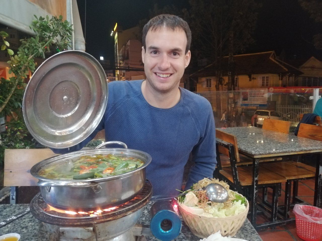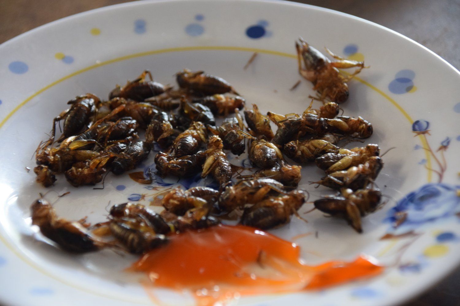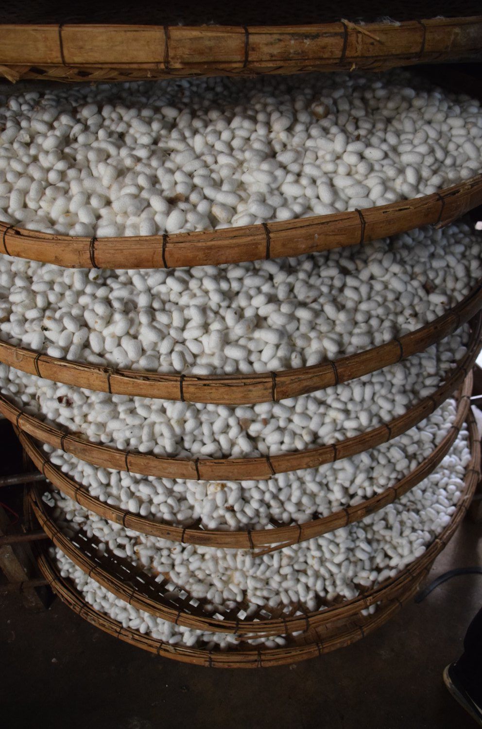 Een leerzame dag in Vietnam. We leerden veel over de echte Vietnamese cultuur. Je ziet op de foto's onder andere krekels die als snack gegeten worden, coconnetjes van rupsen om zijde van te maken en hondenvlees op de markt. In de middag gingen we met gids naar een etnische minderheid op het platteland (waar we geen foto's mochten maken). Eerst leken we helemaal niet welkom te zijn ("wat komen die Amerikanen hier doen?") maar later mochten we bijna niet meer weg en kregen we nog handgemaakte kleedjes mee als souvenir. Wat was dit weer een avontuur om te zien hoe deze mensen totaal anders leven op een steenworp afstand van de stad.