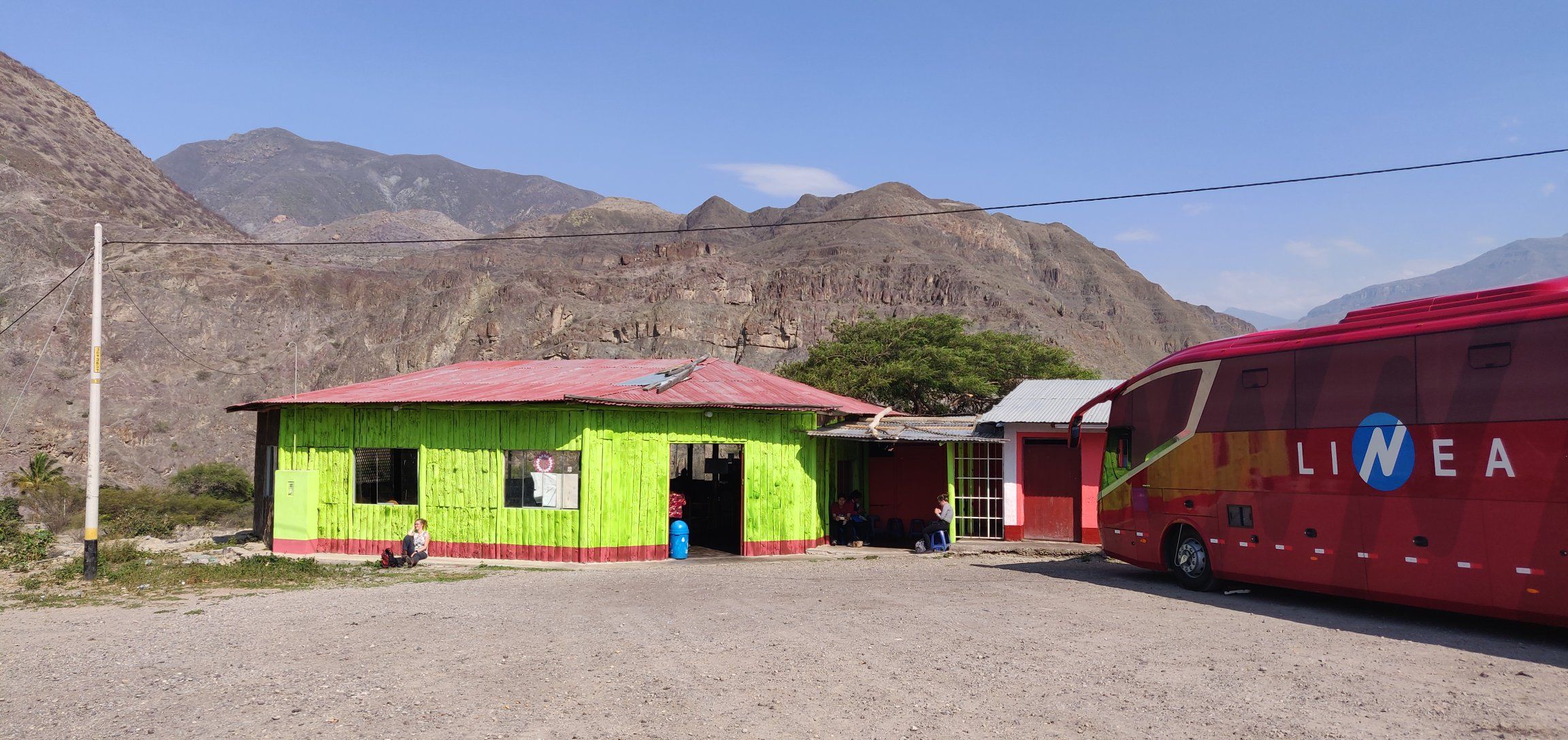 Met de bus van Trujillo naar Cajamarca, even stoppen voor een lunch