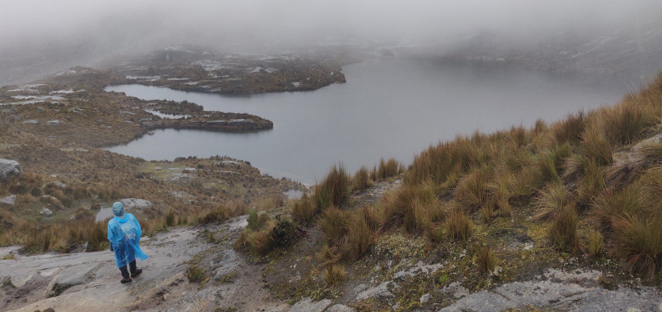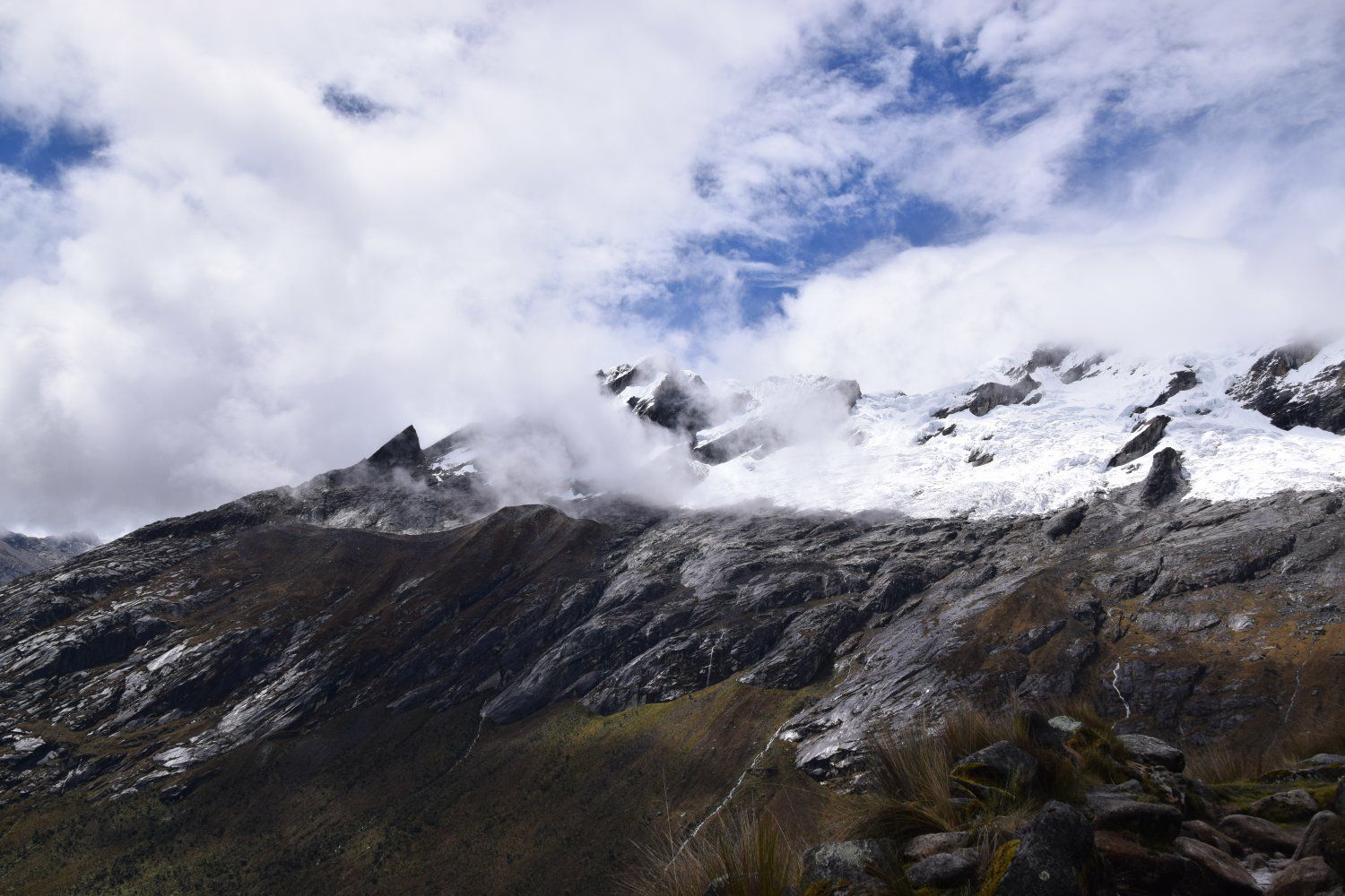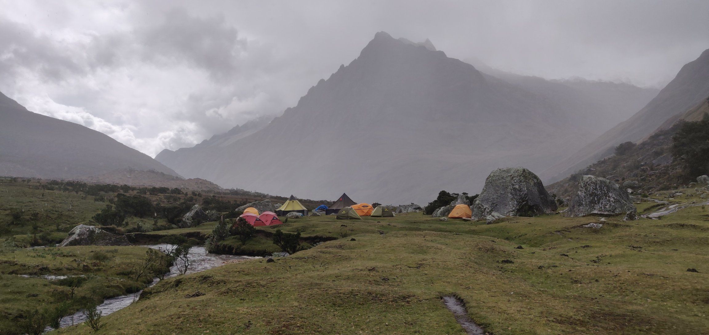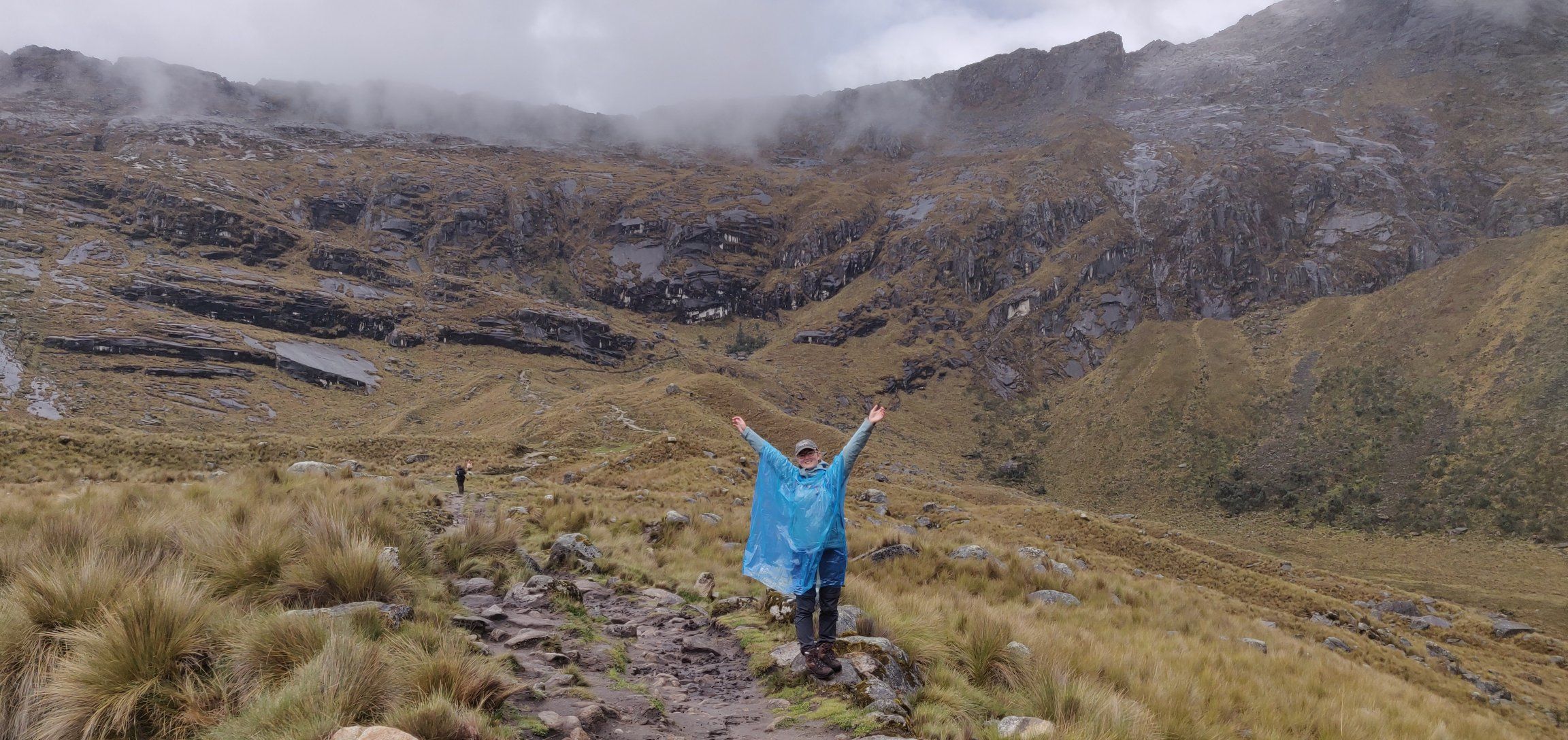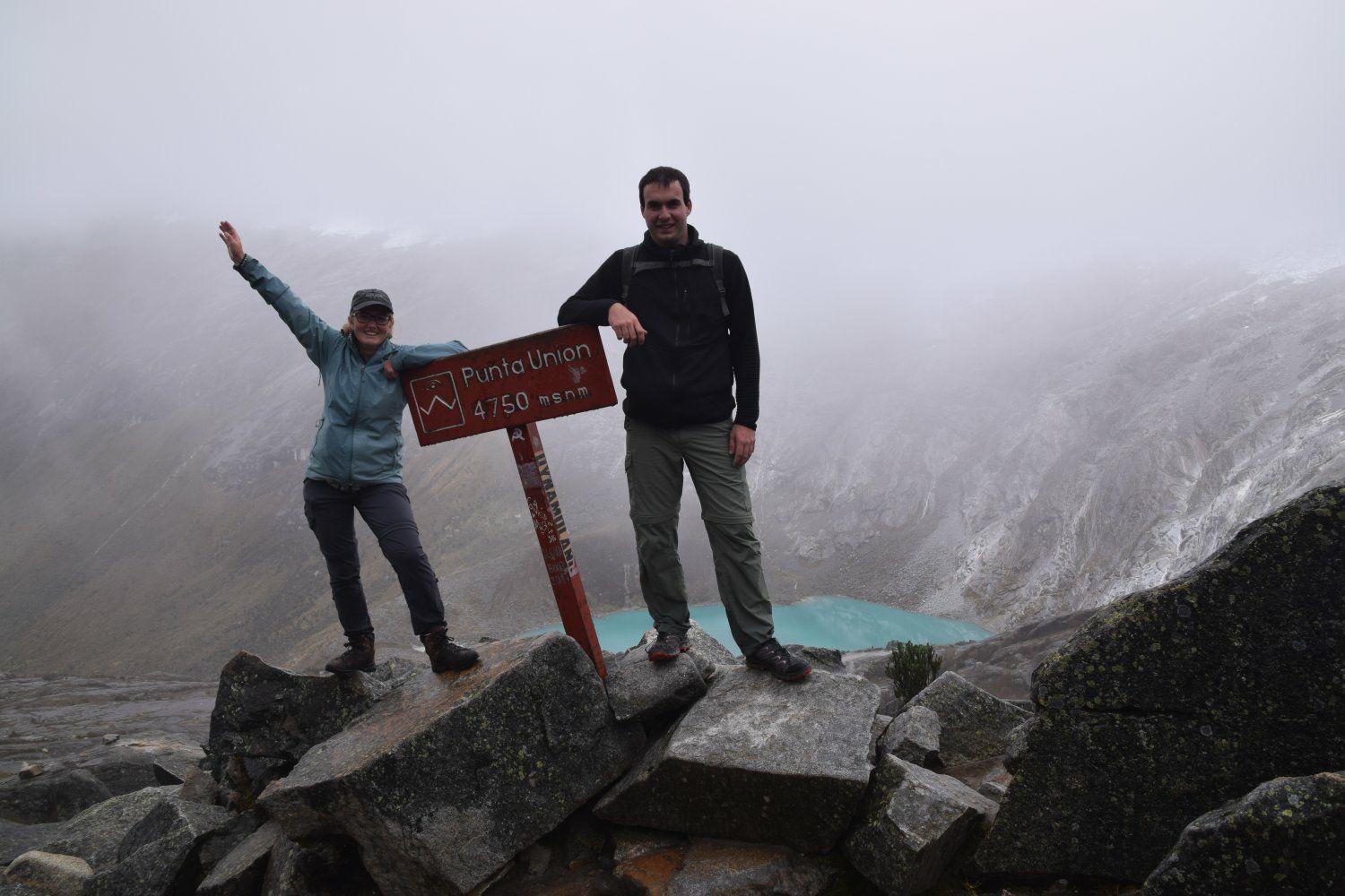 Santa Cruz trek - dag 2. Deze dag hebben we ook 12 km gewandeld maar was een stukje zwaarder dan de eerste dag. De klim was 839 meter en ging naar het hoogste punt van de trek, namelijk Punta Union op 4.750 meter. Ook deze dag hadden we behoorlijk wat regen en zelfs natte sneeuw, maar op de top hebben we toch heel even van de zon mogen genieten. Uiteindelijk zijn we weer afgedaald naar circa 4.100 meter, waar ons kamp stond opgesteld om de 2e nacht door te brengen.