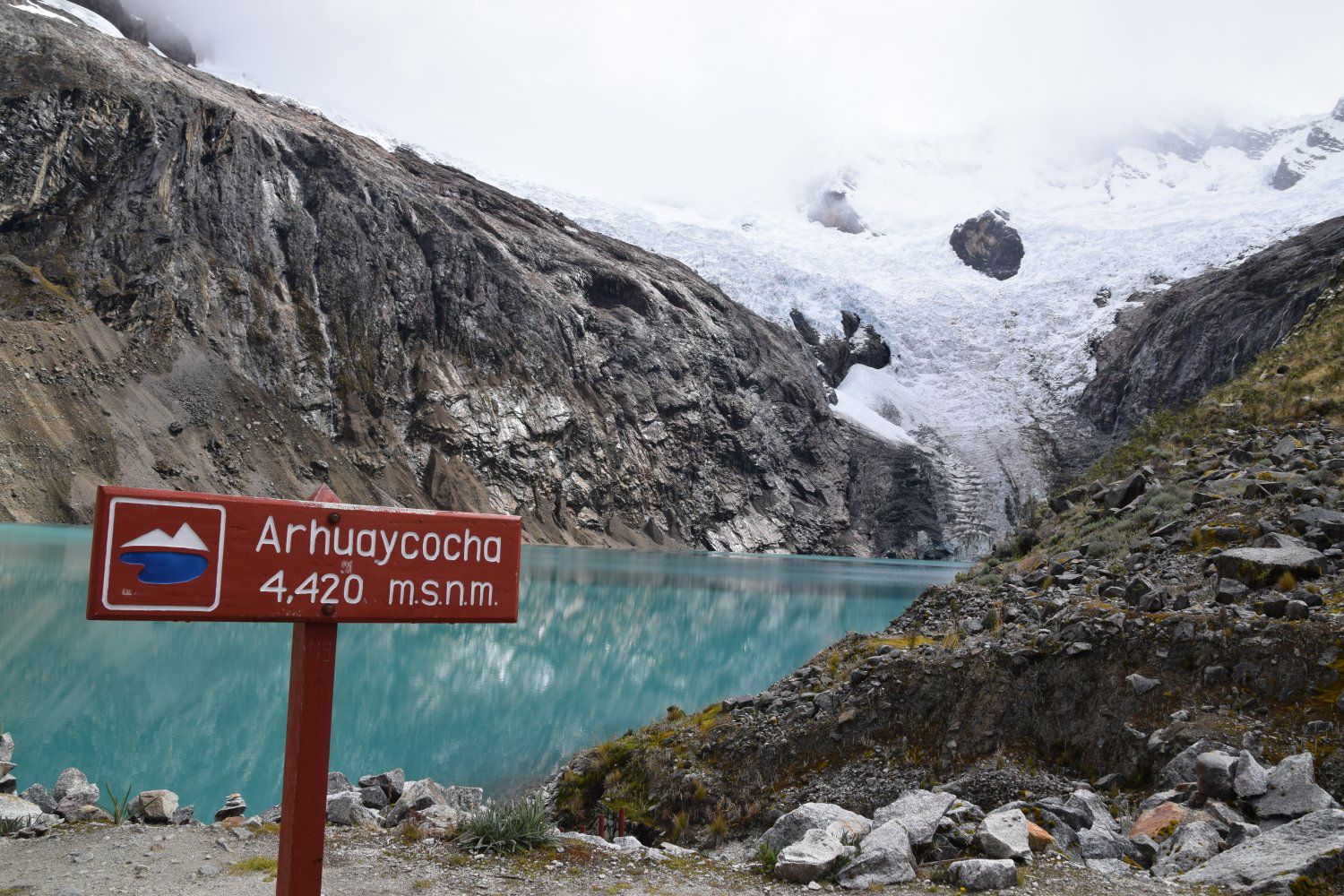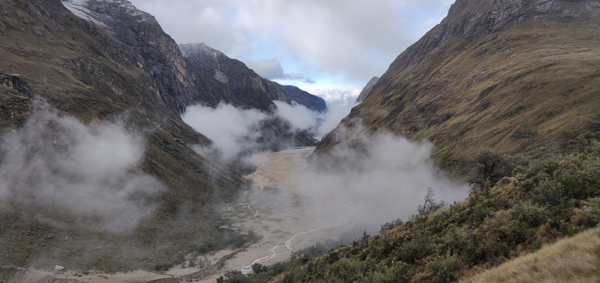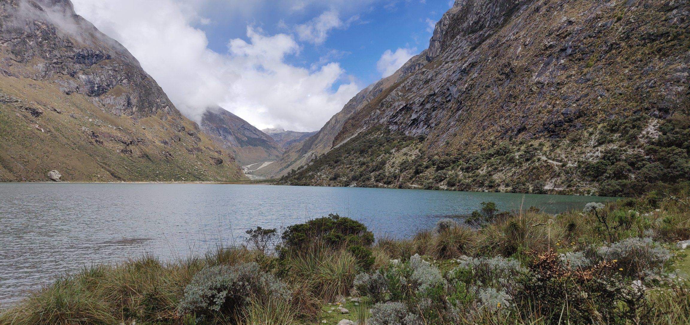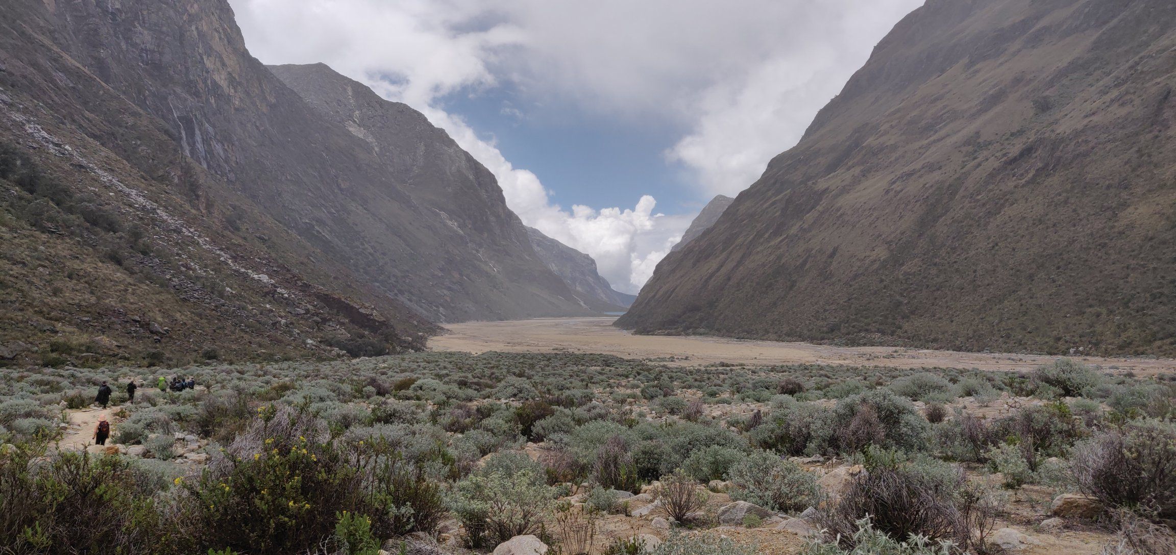 Santa Cruz trek - dag 3. Dit was de langste dag van de 4. We kozen ervoor om een uitstapje te maken naar het prachtige Arhuaycocha meer. Hiervoor moesten we bijna 10 km extra wandelen, maar dit was het meer dan waard. Het begon met een lichte klim van 300 hoogtemeters over 5 km. Hierna bereikten we al direct het meer met op de achtergrond een gletsjer. Ook het uitzicht de andere kant op was prachtig: tussen de wolken door konden we regelmatig de top van de Artesonraju zien, beter bekend als de Paramount. Na ongeveer een uur genieten vervolgden we onze weg, nu naar beneden. Een daling van ongeveer 900 meter over een lengte van 19 km. We passeerden echt indrukwekkende landschappen: van zandige valleien tot uitgestrekte grasvelden en van gigantische meren tot wilde rivieren. Bij het terug zien van de foto's krijgen we nog steeds kippenvel.