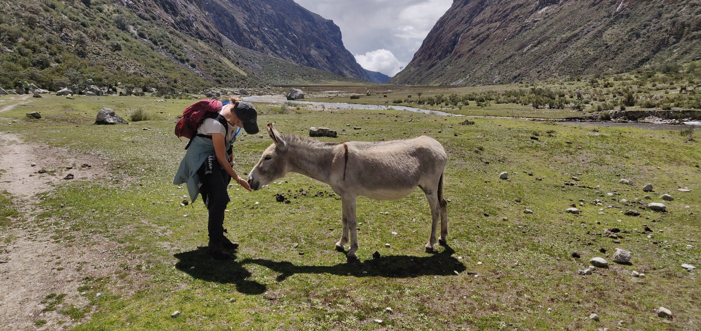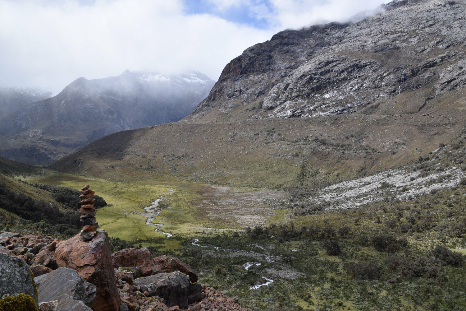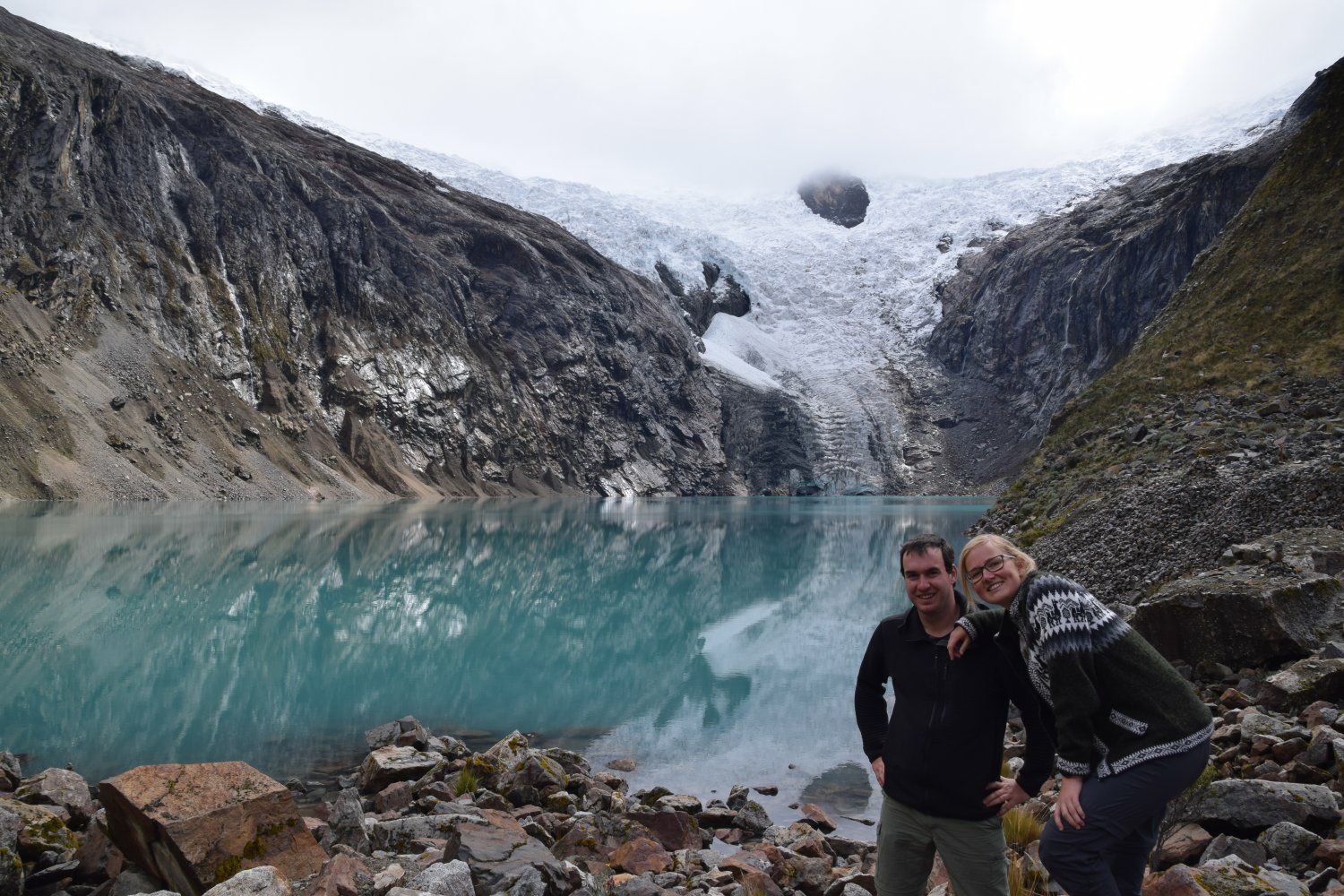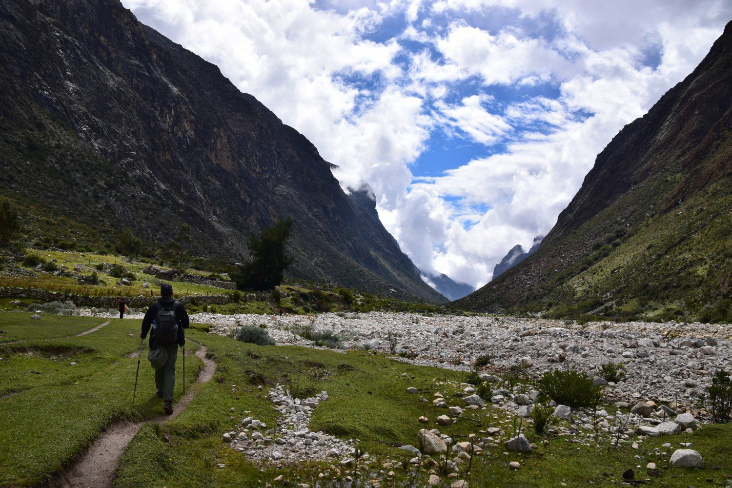 Santa Cruz trek - dag 3. Dit was de langste dag van de 4. We kozen ervoor om een uitstapje te maken naar het prachtige Arhuaycocha meer. Hiervoor moesten we bijna 10 km extra wandelen, maar dit was het meer dan waard. Het begon met een lichte klim van 300 hoogtemeters over 5 km. Hierna bereikten we al direct het meer met op de achtergrond een gletsjer. Ook het uitzicht de andere kant op was prachtig: tussen de wolken door konden we regelmatig de top van de Artesonraju zien, beter bekend als de Paramount. Na ongeveer een uur genieten vervolgden we onze weg, nu naar beneden. Een daling van ongeveer 900 meter over een lengte van 19 km. We passeerden echt indrukwekkende landschappen: van zandige valleien tot uitgestrekte grasvelden en van gigantische meren tot wilde rivieren. Bij het terug zien van de foto's krijgen we nog steeds kippenvel.