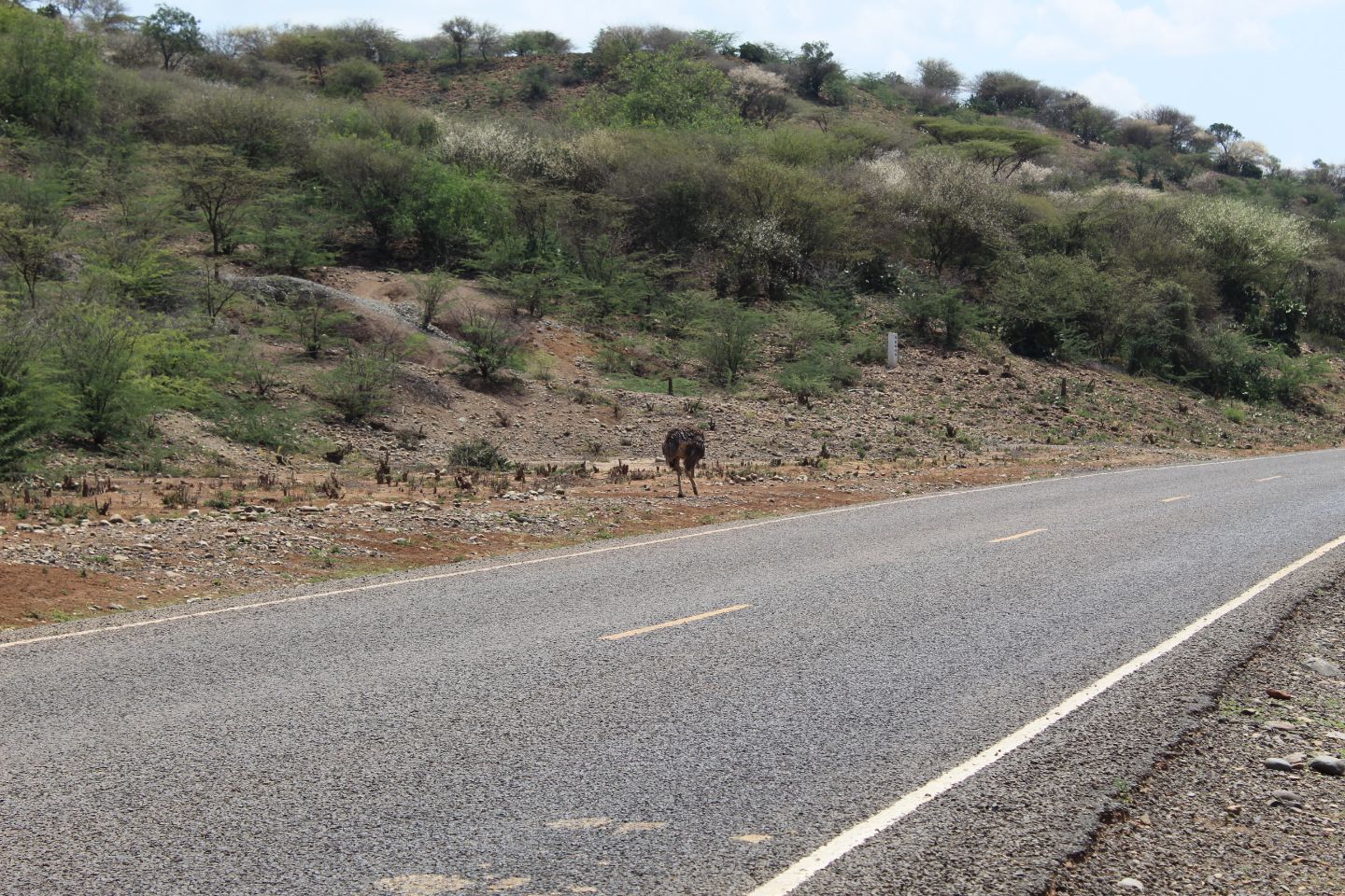 To Lake Bogoria; Ostriches in the Road; Climbing Out of the GRV