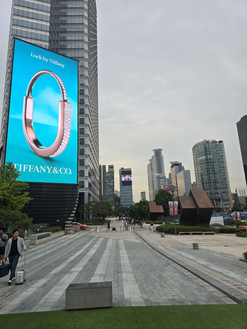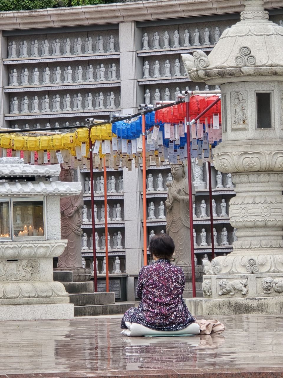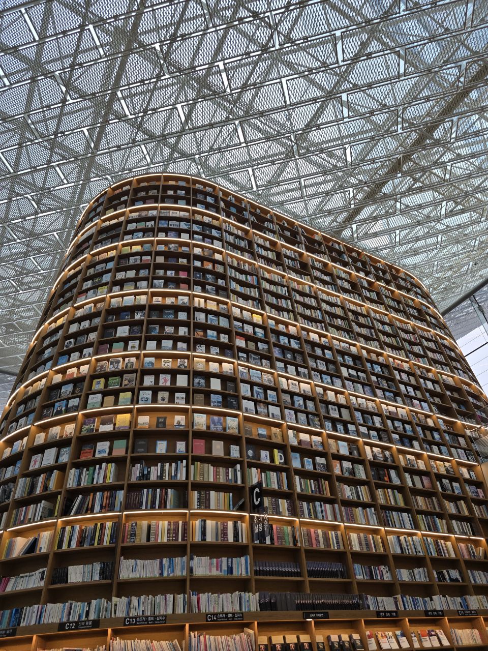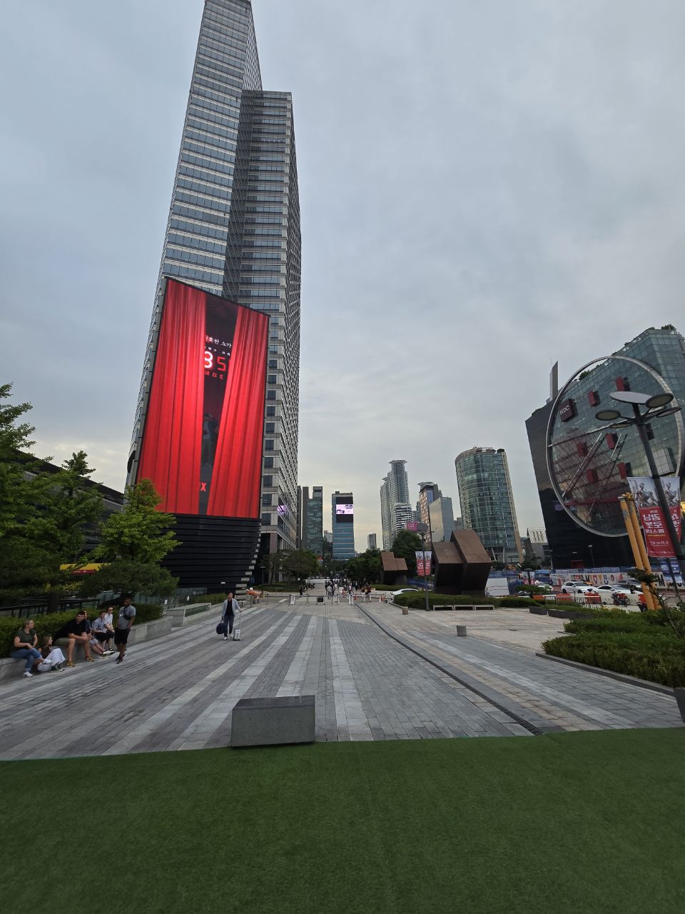 Nos organismes subissent le décalage horaire. Hier soir nous avons trouvé le sommeil tard dans la nuit (sauf Marius qui dort comme un loir!) Et ce matin réveil difficile aux alentours de 10h. Notre mission du jour: trouver un magasin de vélo pour changer 2 vis de ma potence afin de stabiliser cette dernière. Google map indique un magasin à 3,2 kms ce qui nous semble jouable. En 2h ce sera plié. Malheureusement en Corée rien n'est simple et tout prend du temps...nous trouvons le magasin de vélo après presque 2h et plus de 15 kms ! Kim, le gérant de la boutique est adorable et fait tout pour nous aider mais il ne peut pas réparer mon vélo. Il nous adresse à un magasin Giant et nous repartons pour 10 kms supplémentaires ! Finalement nous aurons perdu 4h de la journée car nous ne trouvons pas le fameux magasin Giant...encore un mauvais tour de google map! Nous abandonnons...et croisons les doigts pour que la potence tienne en tout cas jusqu'à Busan!! Pour ne pas rester sur cette impression amère d'échec et de journée gâchée, nous partons en fin d'après-midi direction le quartier de Gangnam-gu et flânons dans le COEX mall, un immense complexe comprenant un parc des expositions, des infrastructures de loisirs et le plus grand centre commercial sous-terrain d'Asie. On y trouve notamment une incroyable bibliothèque : la Starfield Library qui vaut vraiment le détour. En face du COEX mall se trouve le temple bouddhiste Bogeun-sa où nous nous baladons au milieu des lanternes colorées et des fidèles qui viennent se recueillir devant l'immense statue de bouddha. Nous terminons cette journée par le marché Gwangjang où nous dégustons des beignets vapeurs et une étonnante soupe froide parsemée de glaçons et subtilement épicée! L'ambiance qui y règne le soir venu est inoubliable!