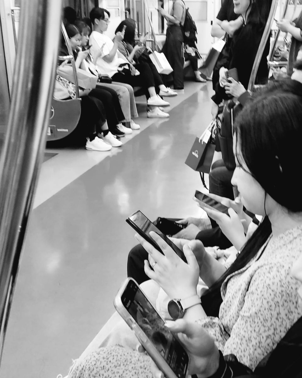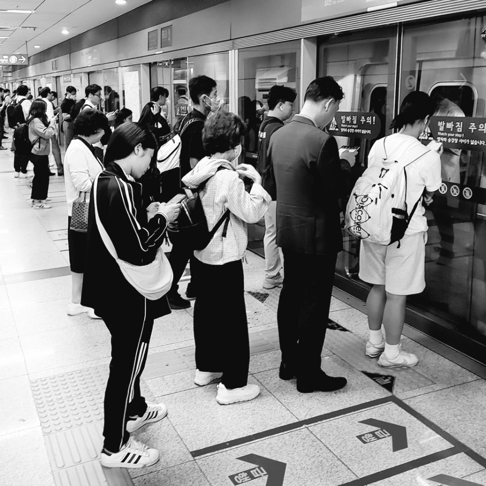Nous quittons Séoul plein d'entrain même si pour être honnête, une journée de plus nous aurait permis de mieux découvrir cette mégalopole où les quartiers ultra-modernes côtoient des maisons et échoppes traditionnelles et que nous avons beaucoup aimé. Un mot encore sur les Coréens et leur addiction à leur téléphone ! Dans la rue, dans le métro, tous ont les yeux rivés sur leur portable à tel point que les passages piétons ont été aménagés de sorte qu'il n'ait pas besoin de lever le nez de leur écran! Un rail lumineux rouge ou vert s'allume au sol les autorisant ou non à traverser.